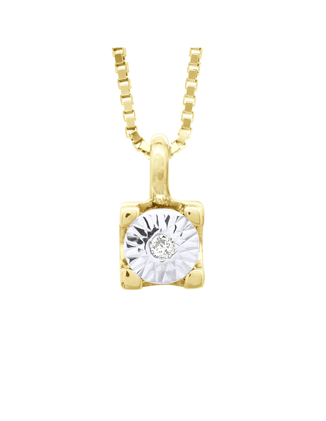Diamond Solitaire Necklace 0.020 CTS - Illusion 0.25 CTS - Gold 375 - Vigo