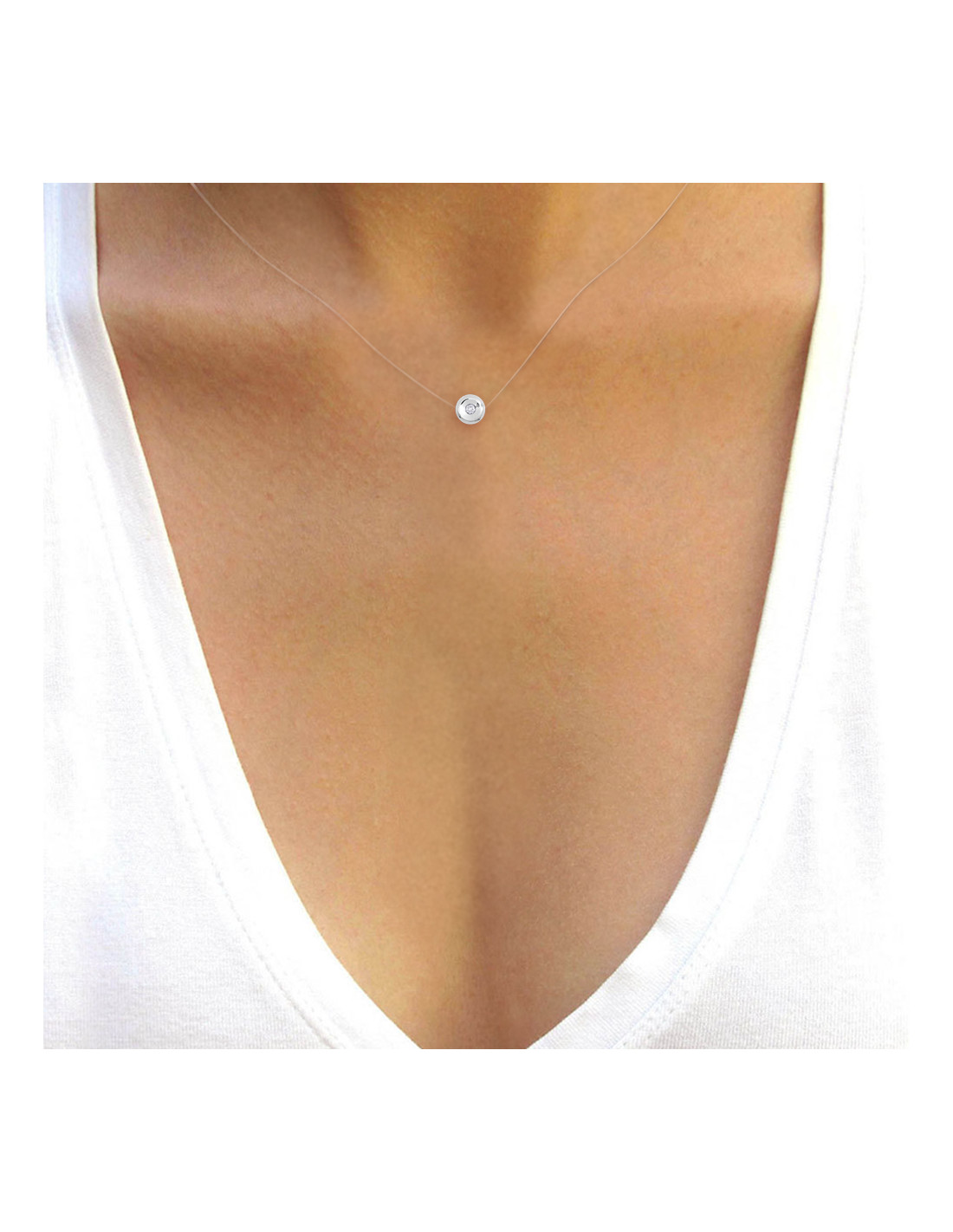 Clear Nylon Necklace Diamond 0.030 CTS Serti Clos - Silver 925 - Formentera