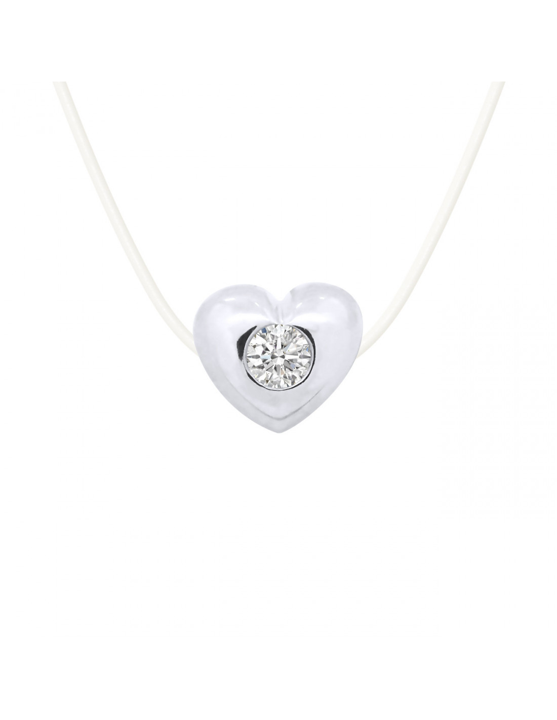 Necklace Nylon Transparent Diamond 0.050 Cts Serti Heart - Silver 925 - CHIAVARI