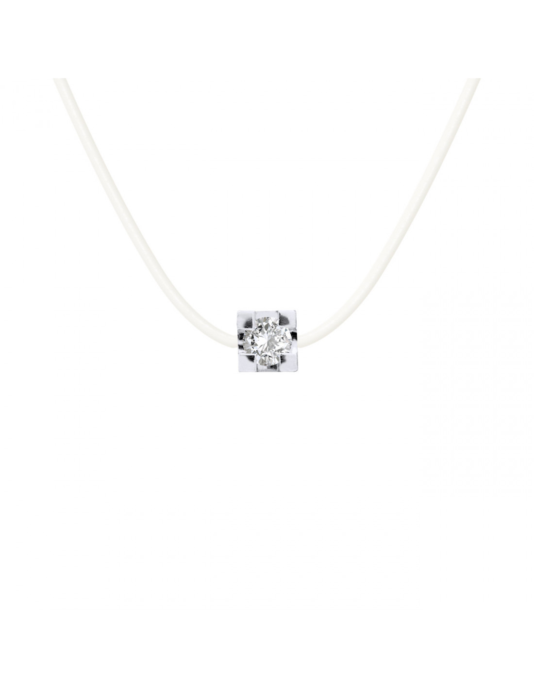 Clear Nylon Necklace Diamond 0.030 CTS Serti Claw - Silver 925 - Ibiza