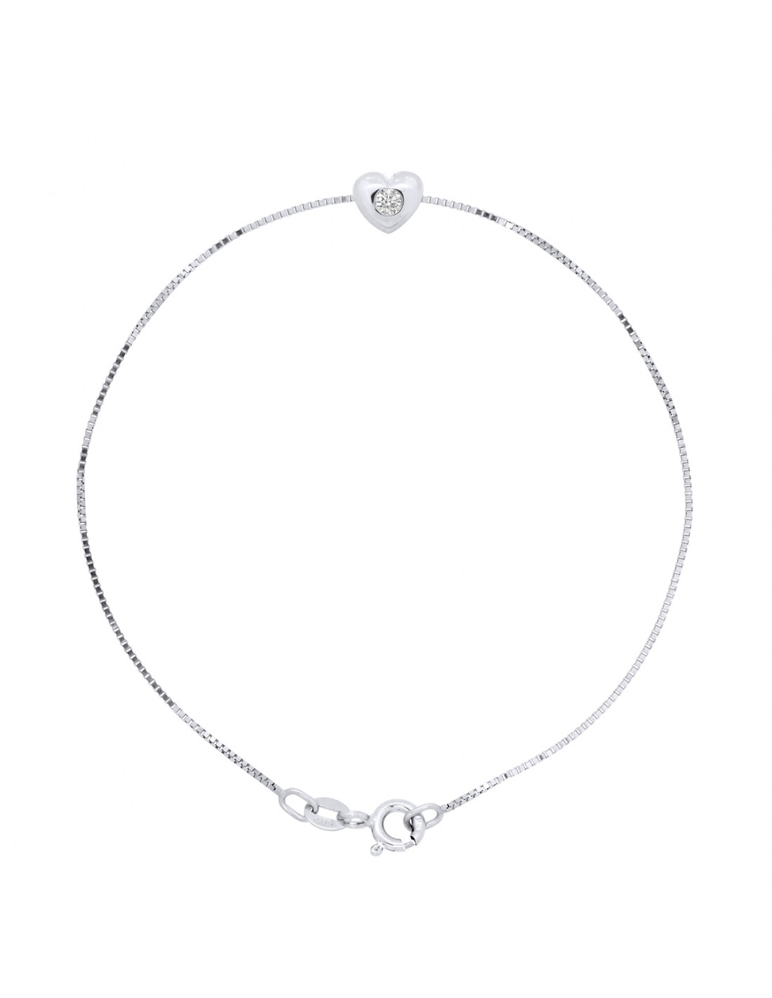 Diamond Bracelet 0.050 CTS Serti Heart - Venetian Chain - Silver 925 - Capri