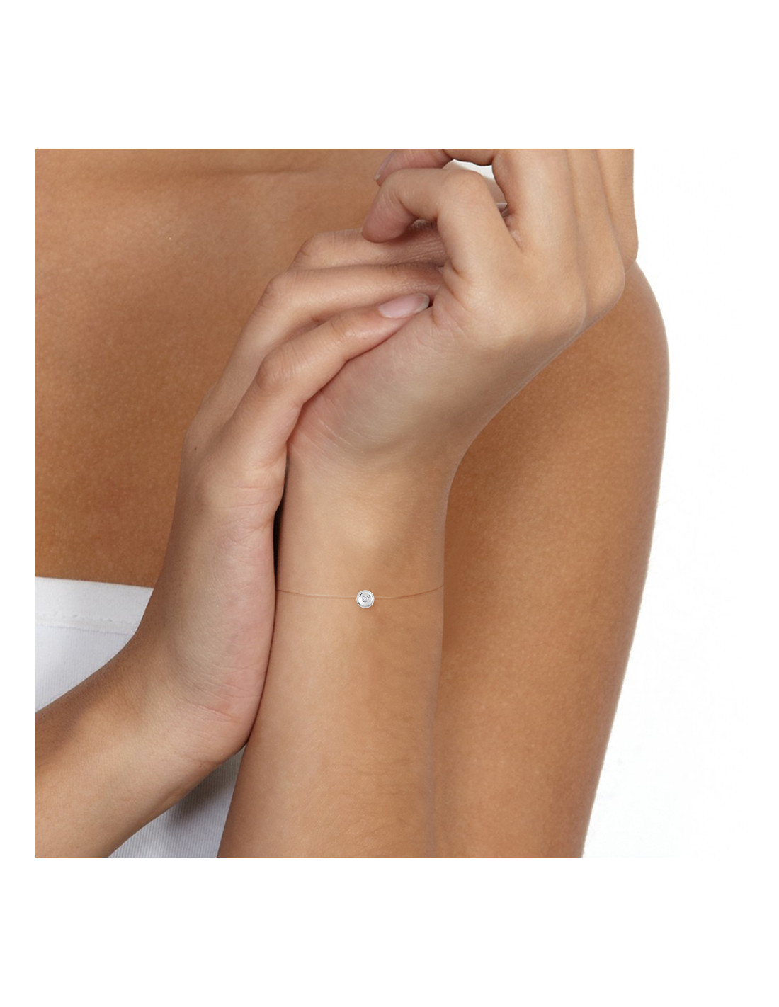 Transparent Nylon Bracelet Diamond 0.030 CTS Serti Clos - Silver 925 - Formentera