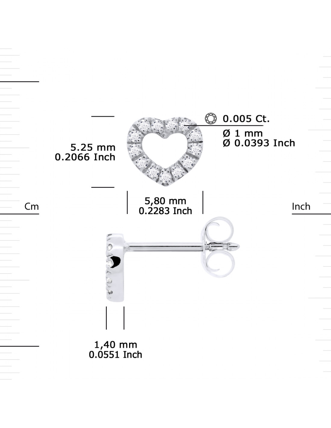 Earrings Heart Diamonds 0.120 Carats - Gold 375...