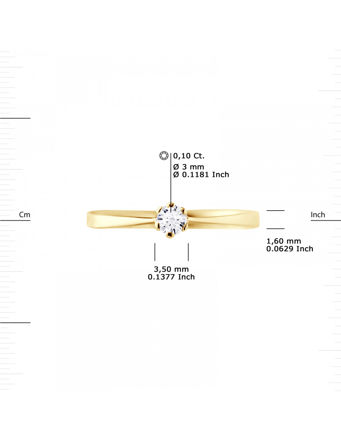 - Prestige jewelery ring - Solitaire Natural diamond 0.10 carats - Seri 6 claws