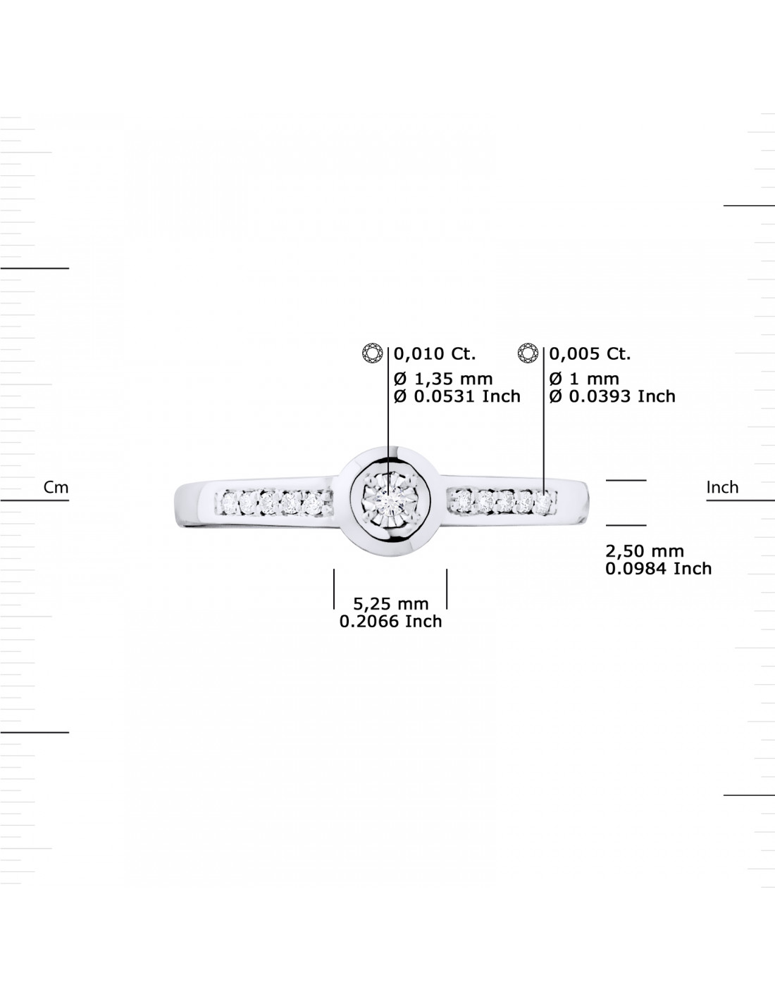 - Central pattern diameter 5.25 mm - max width. 2.5 mm ring body - closed serti