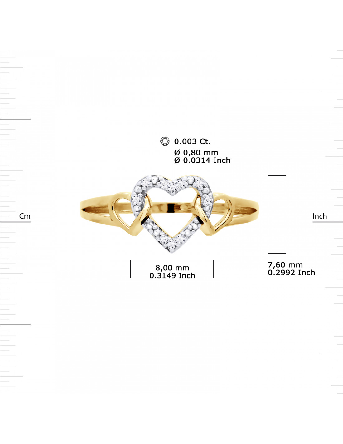 Fancy Heart Ring Diamonds 0.030 CTS - Gold 375...