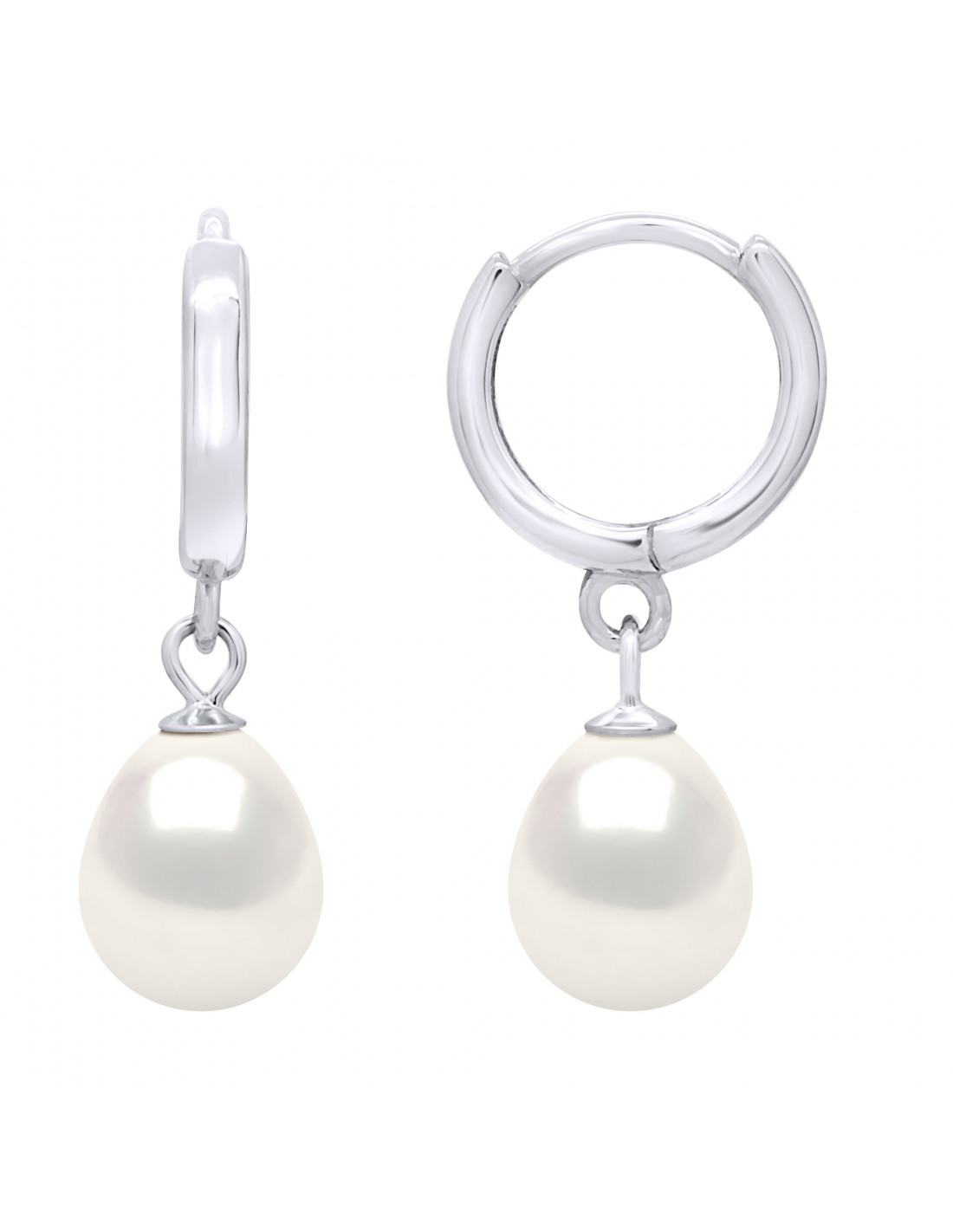 Earrings Creole pearl pears 8-9 mm - 925 silver - Saint Cyr