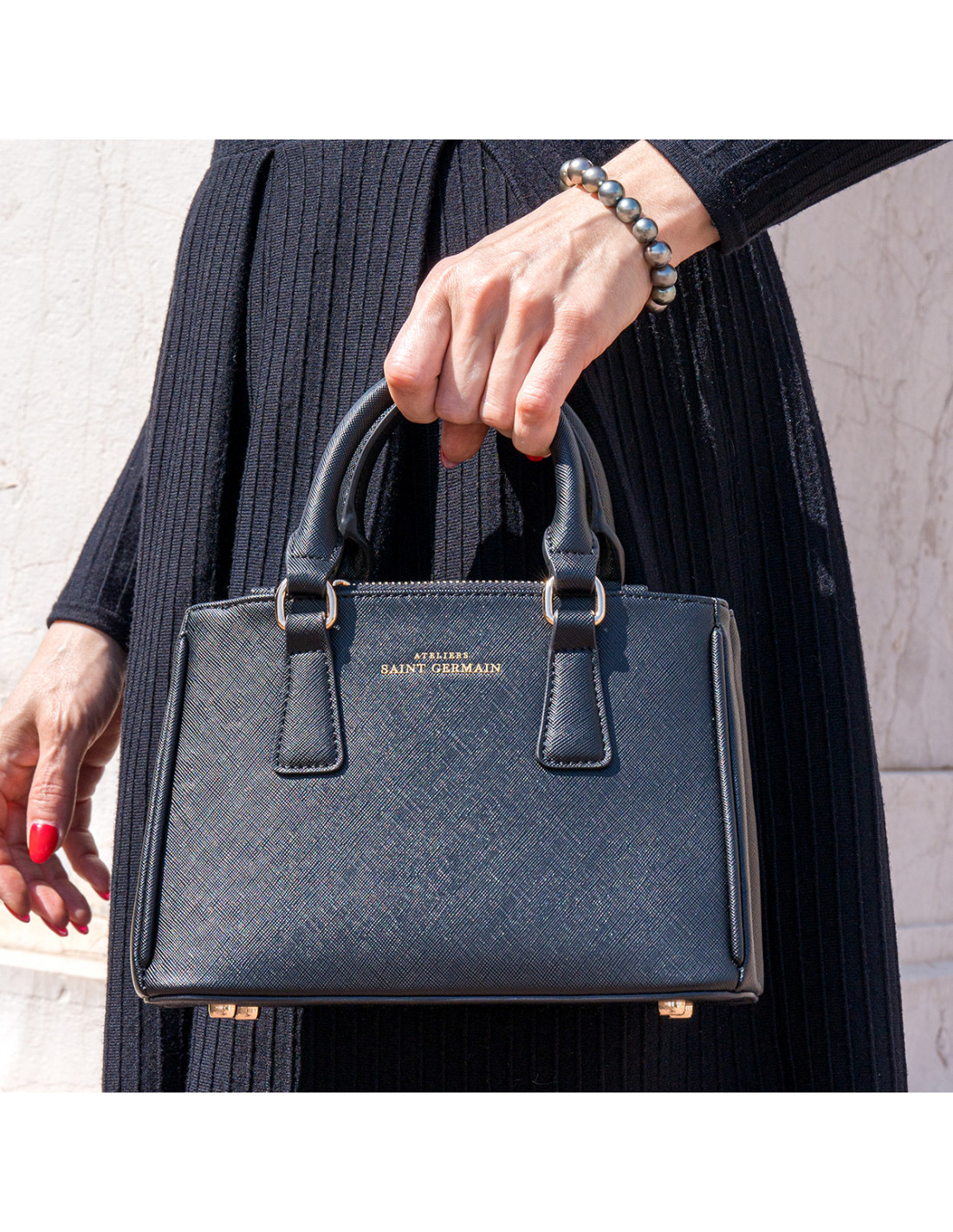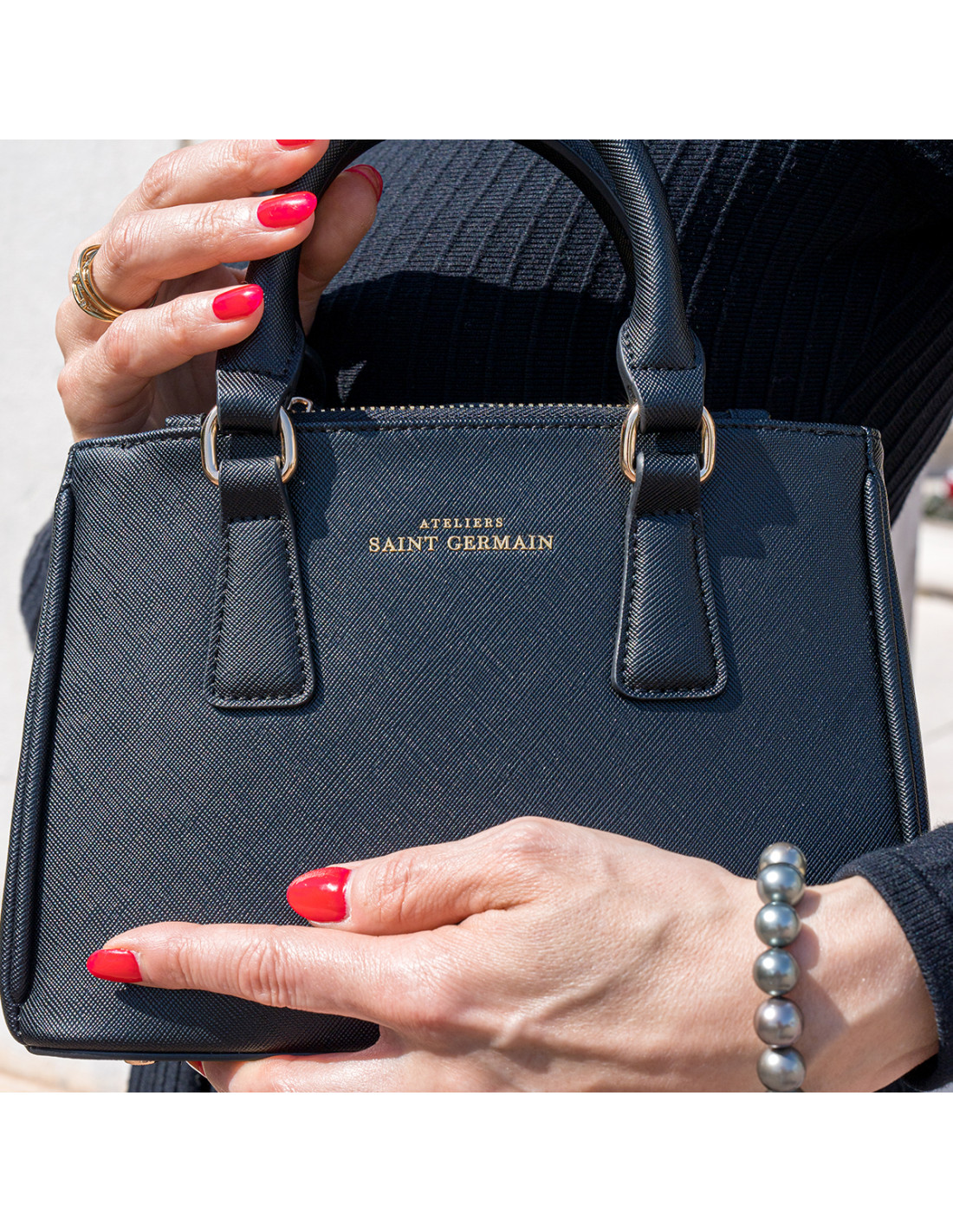 Sac à main NEUILLY - 2 Compartiments zippés et compartiment supplémentaire zippé intérieur - Doublure intérieure Suédine - Soufflets d'aisance - Porté Main - Bandoulière ajustable et amovible disponible - Logo ATELIERS SAINT GERMAIN - Finition Cuir Saffiano