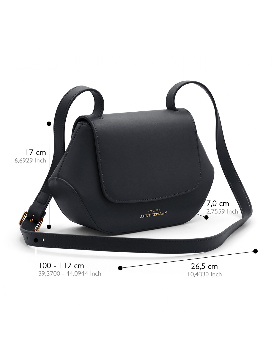 - Bandoulière ajustable Fournie : 110-120 cm