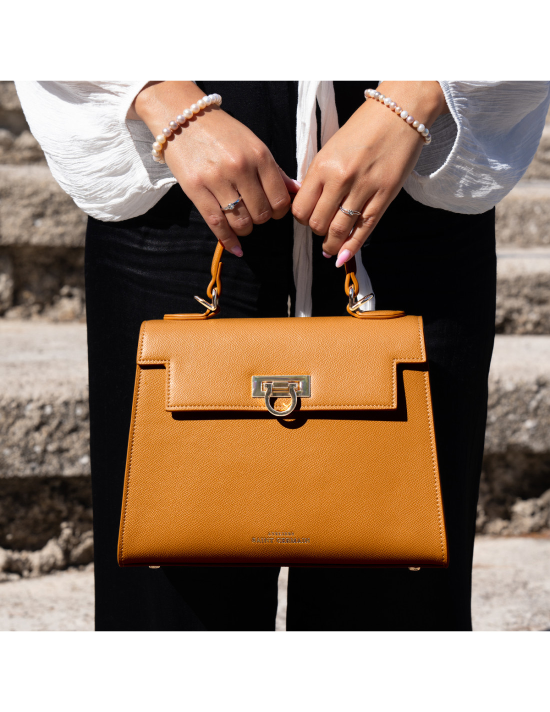 Sac à Main CANNES - Compartiment Central avec Poche interne - Poche zippée intérieure - Intérieur Suédine - Fermeture Boucle Dorée - Bandoulière ajustable et amovible disponible - Logoté ATELIERS SAINT GERMAIN - Finition Cuir Grainé