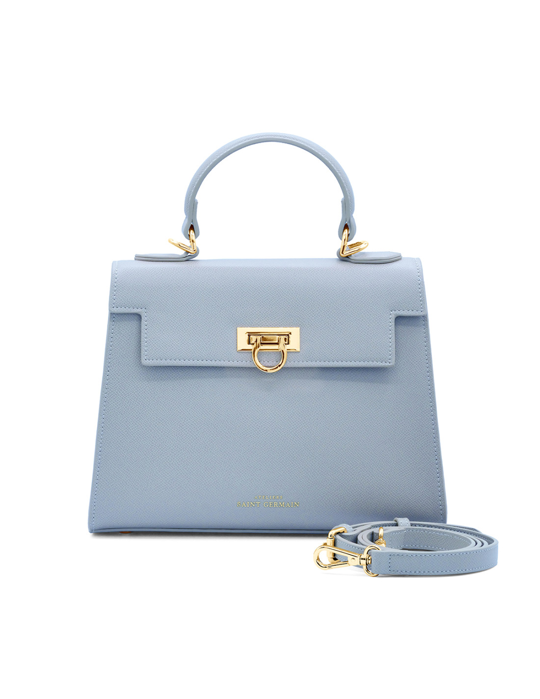 Sac à Main CANNES - Compartiment Central avec Poche interne - Poche zippée intérieure - Intérieur Suédine - Fermeture Boucle Dorée - Bandoulière ajustable et amovible disponible - Logoté ATELIERS SAINT GERMAIN - Finition Cuir Grainé