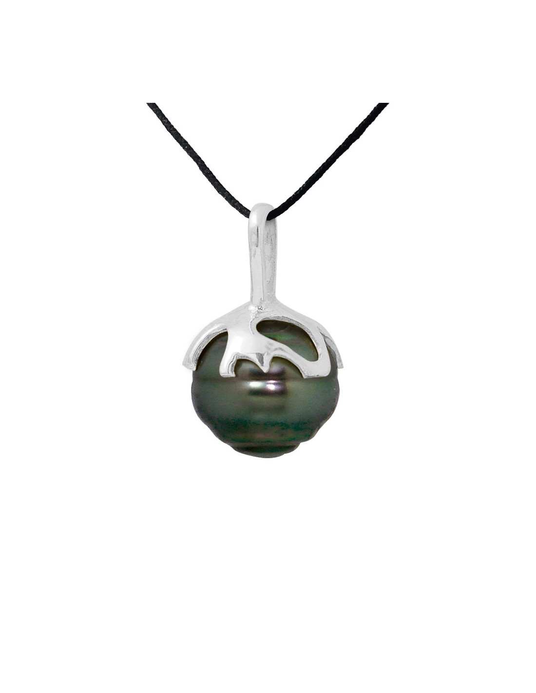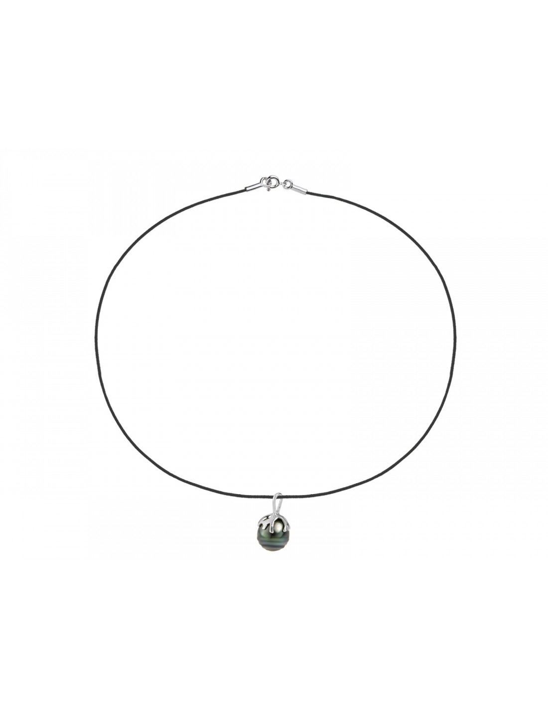 Necklace Link Cord Pendant Ethnic Tahitian Pearl Circle 8-9 mm - Silver 925 - Padengama