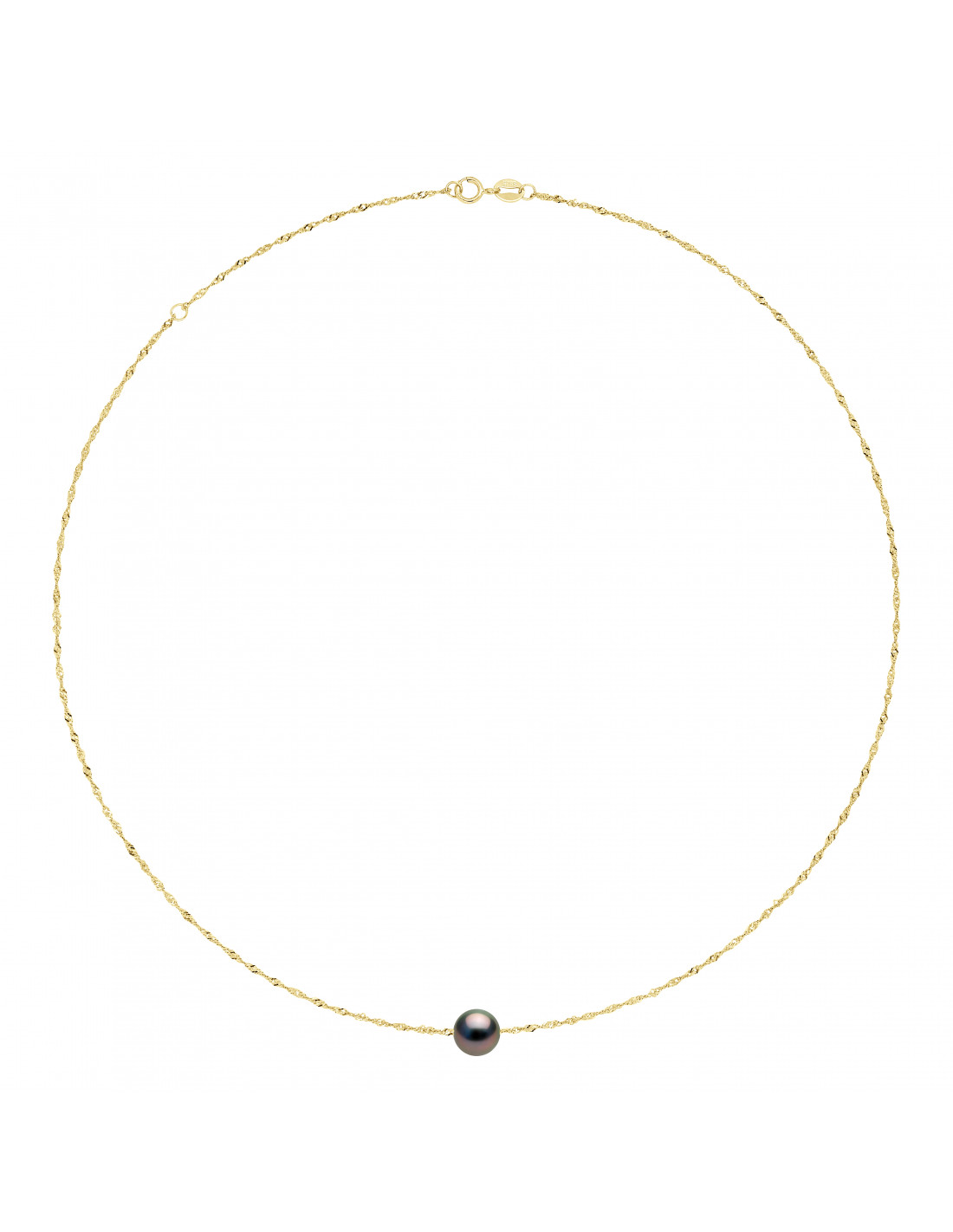 Tahitian Bead Necklace Round 9-10 mm - Singapore Chain - Gold 750 - Rapanui