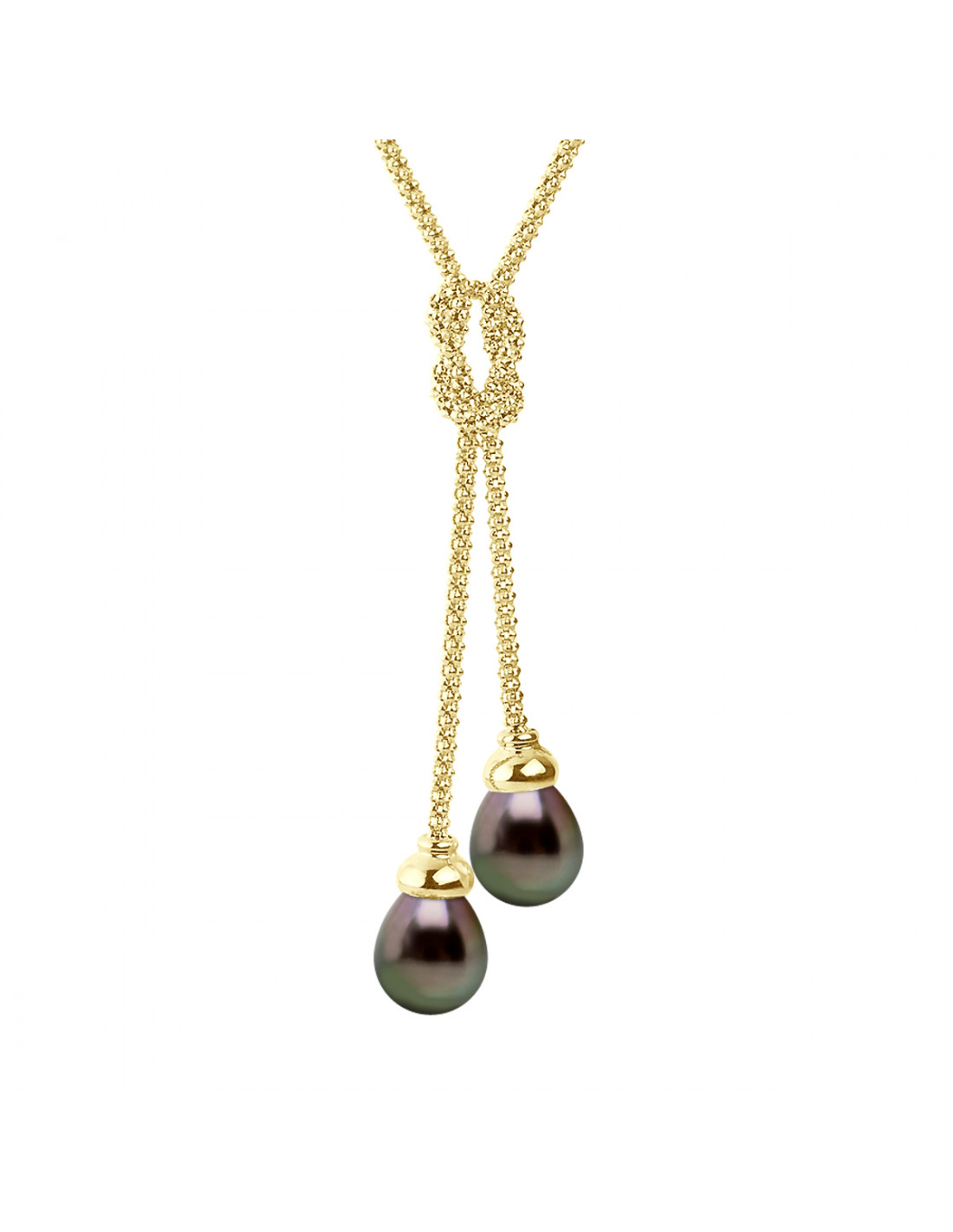 Prestige Necklace You & Me - Tahitian Beads Poir 9-10 mm - AMANDINE CHAIN - OR 750 - Farakuvo