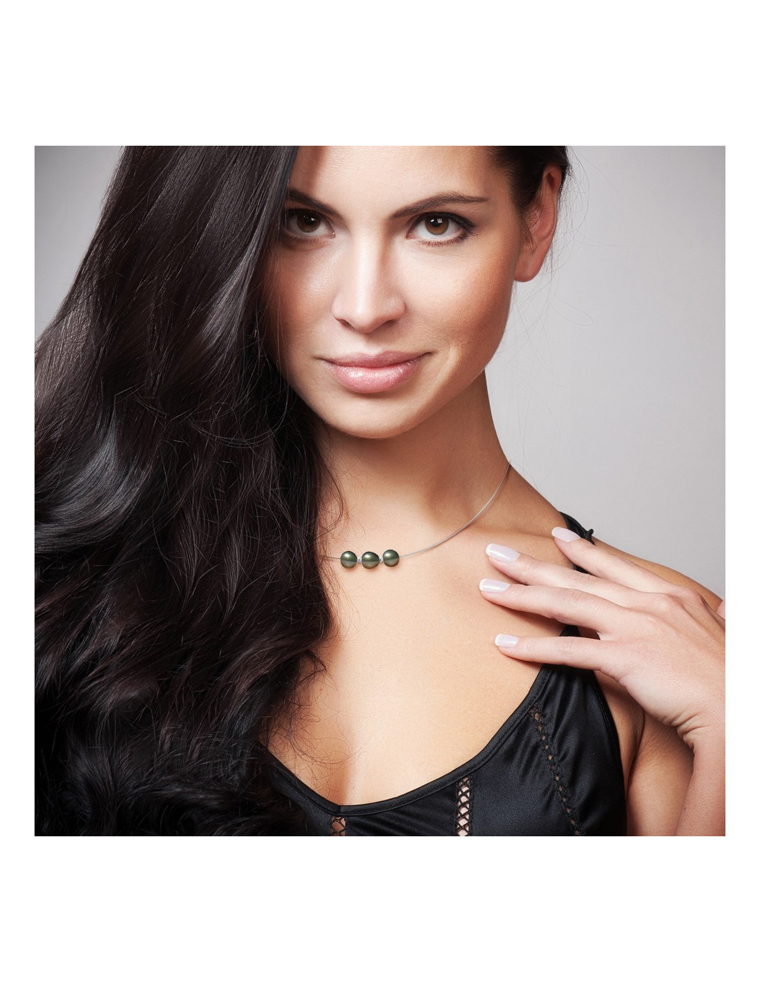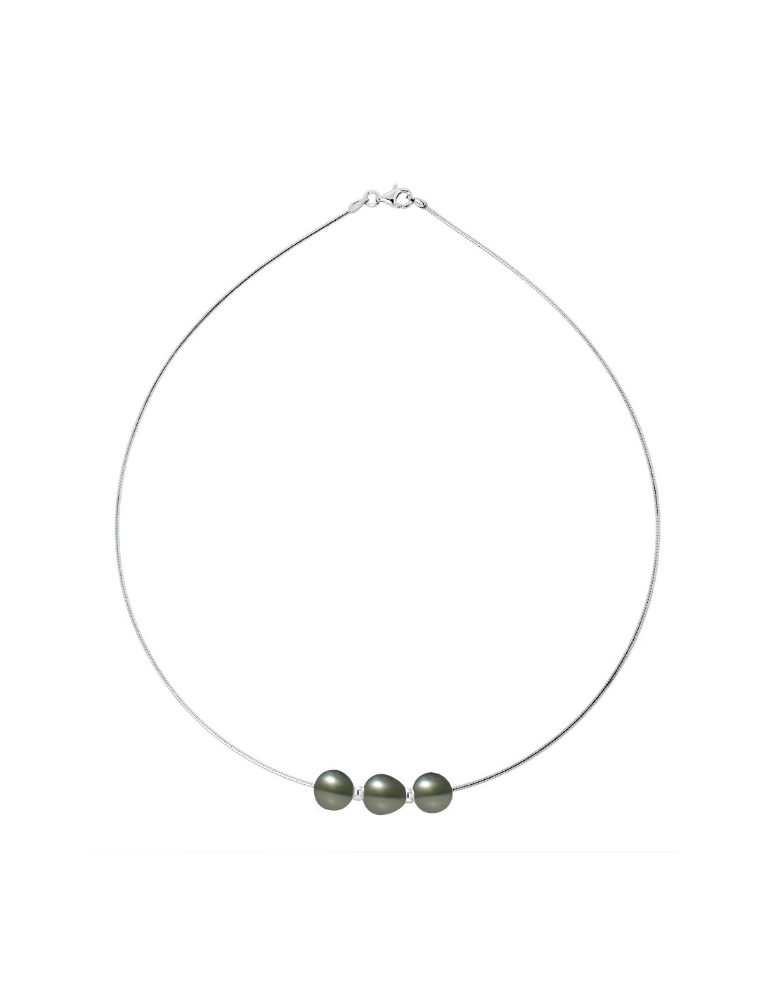 Omega Necklace 3 Round Tahitian Beads 9-10 mm - Silver 925 - Manakani