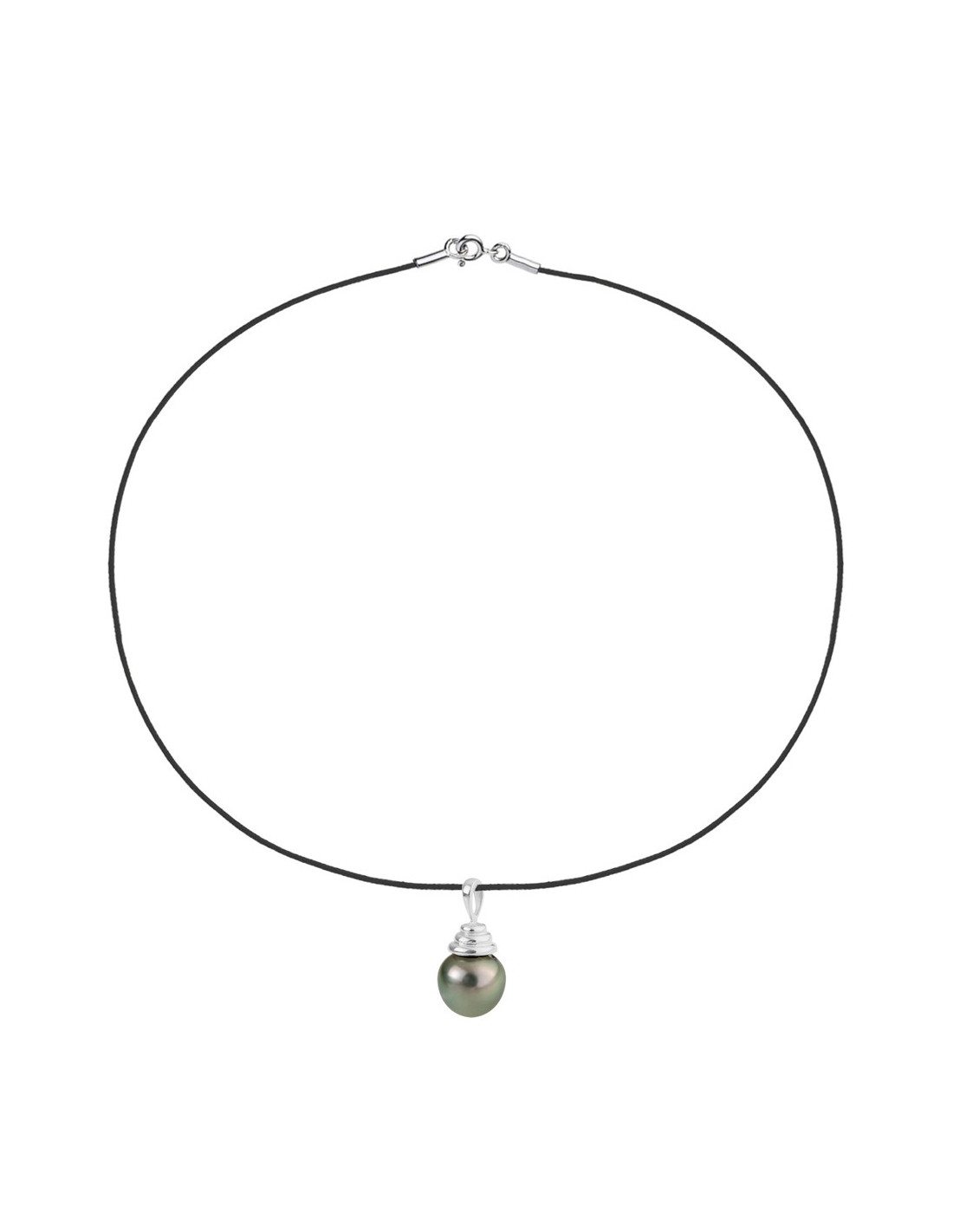 Necklace Link Cord Pendant Tahiti Pearl Circled 9-10 mm - Silver 925 - Padintamo