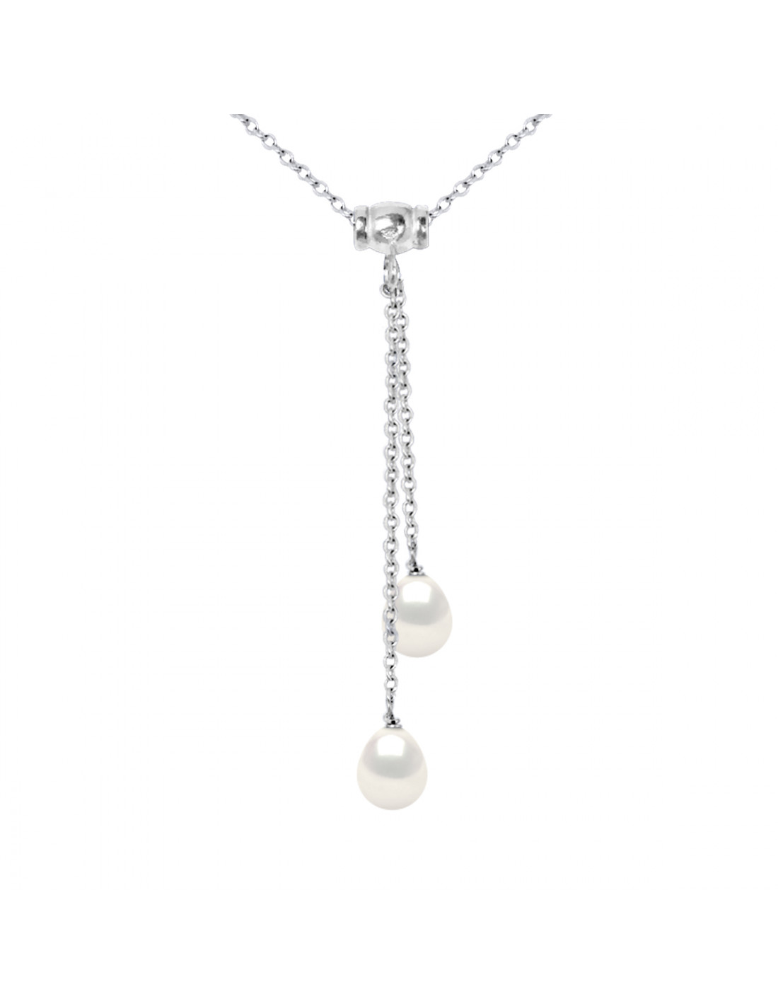Necklace You & Me pearl pear 7-8 mm - Several colors - Silver 925 - Menton