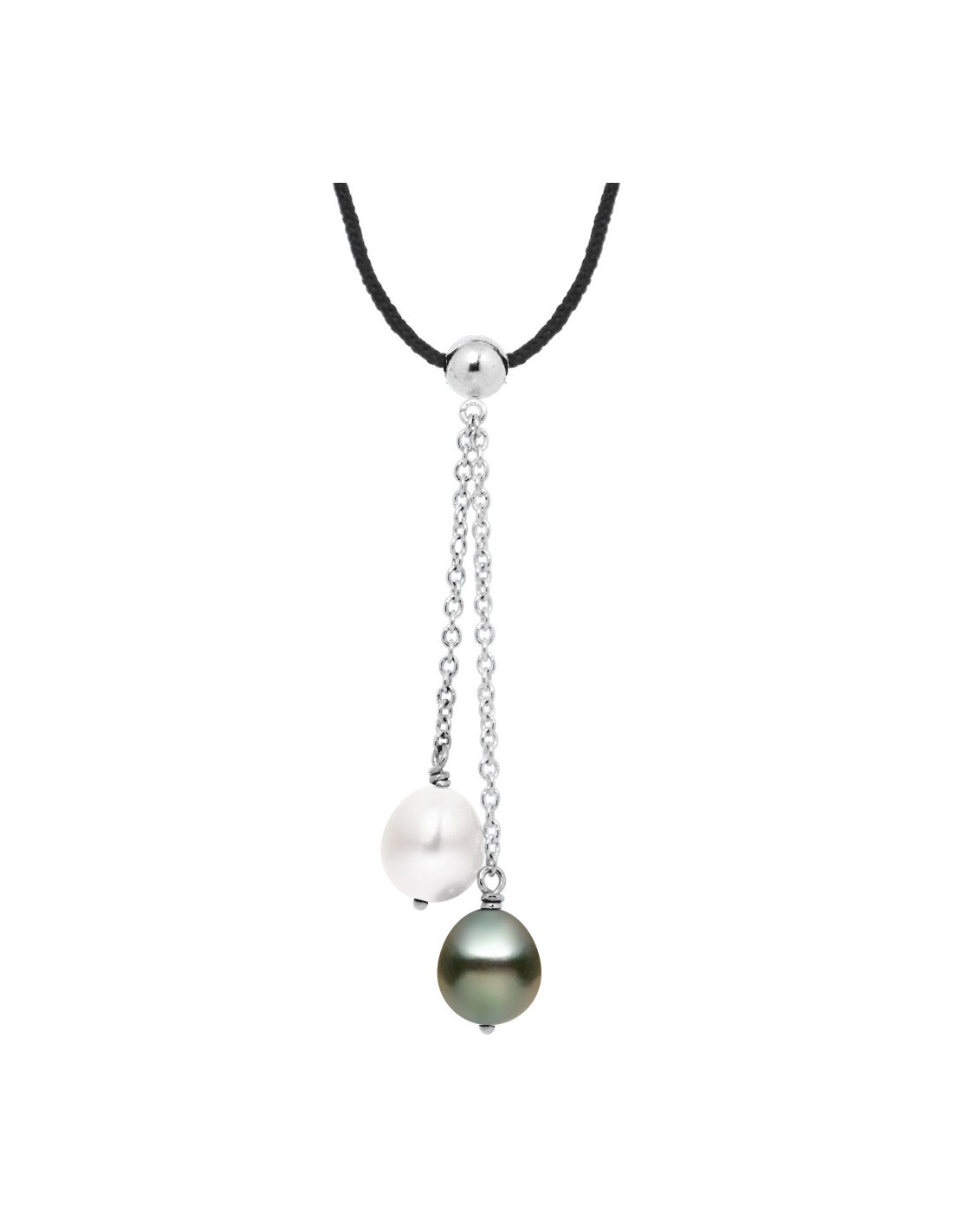 Necklace Link Cord Black You and Me - Tahitian Pear Pear 8-9 mm - Silver 925 - Tupai