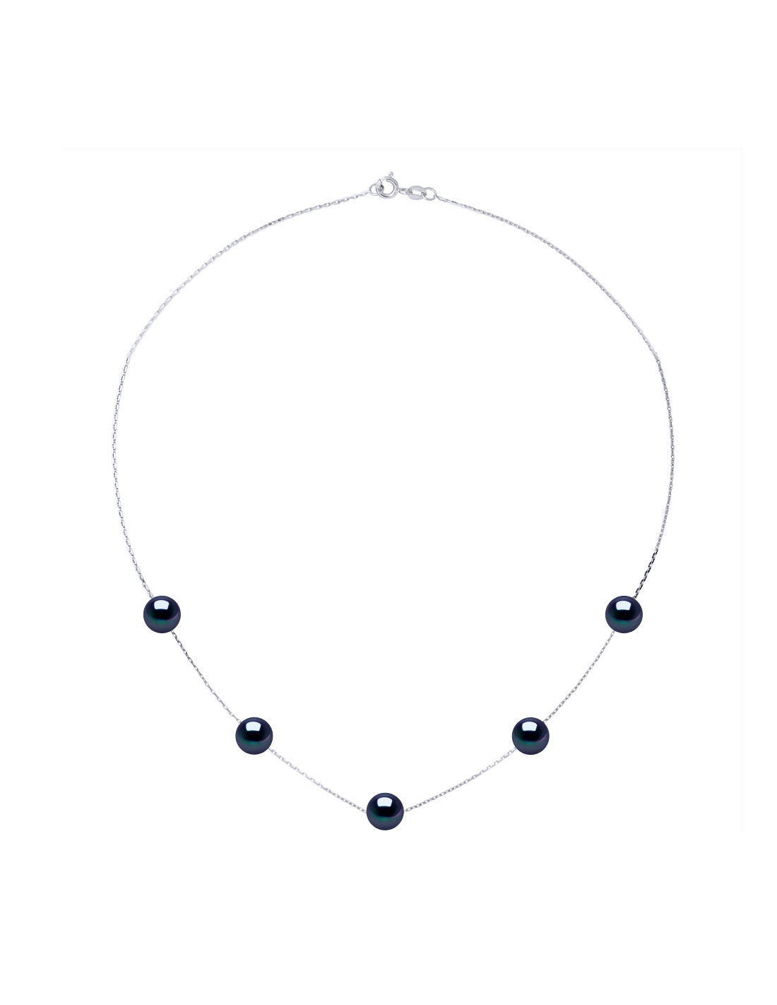 Necklaces Chainage 5 round beads 7-8 mm - Several colors - Silver 925 - Grimaud