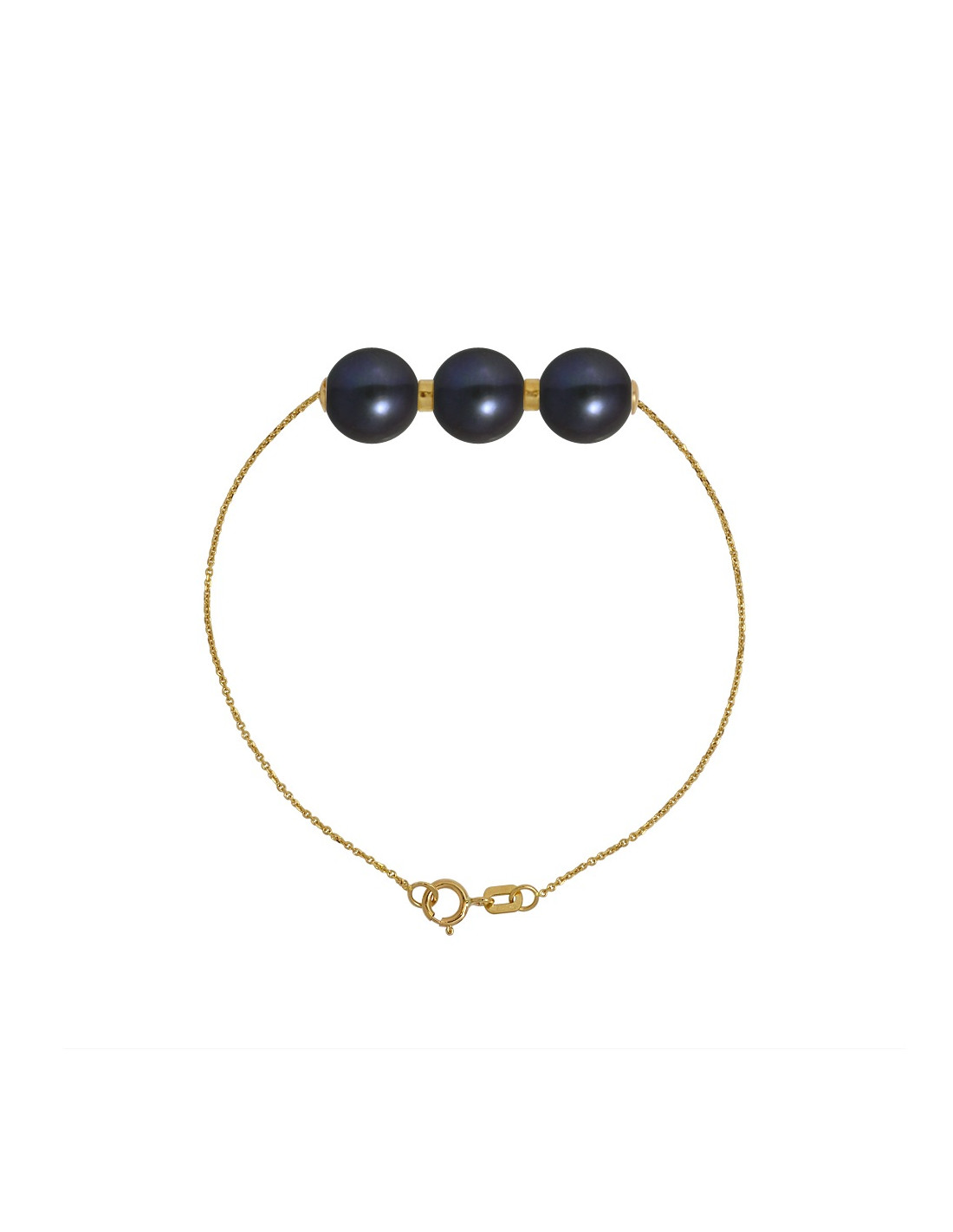 Prestige Bracelet 3 round beads 9-10 mm - Chain Forçat - Gold 375 - Massy