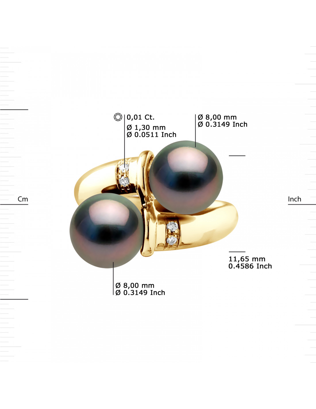 Ring You & Me - Round Tahitian Beads 8-9 mm - Diamonds 0.040 CTS - Jewelry Gold 375 - Manae