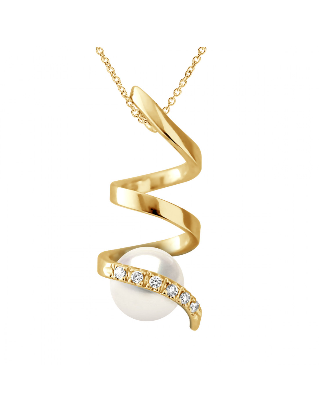 Jewelery Pendant Round Pearl 7-8 mm - Diamonds 0.060 CTS - Gold 375 - Chain Offered - Friedland