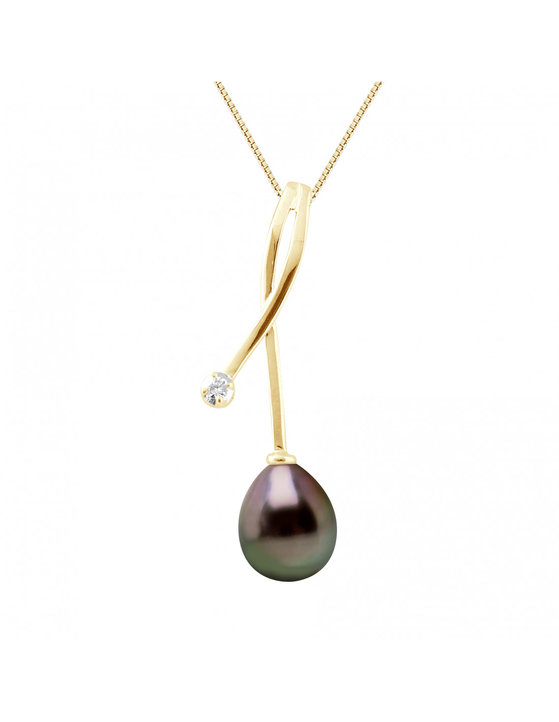 Prestige Necklace - Tahitian Pear Pear 8-9 mm - Diamonds 0.020 CTS - Jewelry Gold 375 - Ratanko