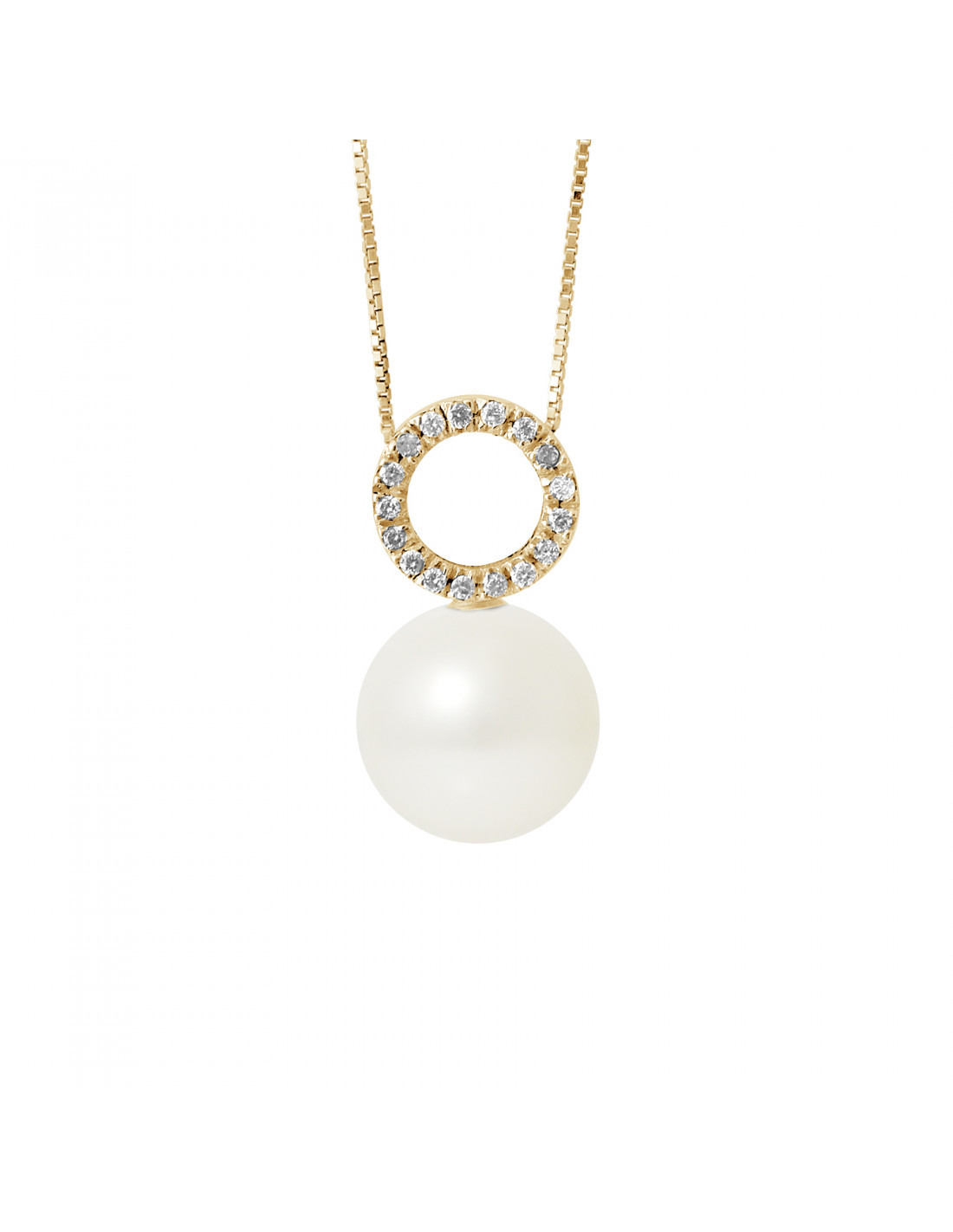 Necklaces Pendant Jewelry Round Beads - Sizes from 9 to 12 mm - Diamonds 0.080 CTS - Gold 375 - Houdan