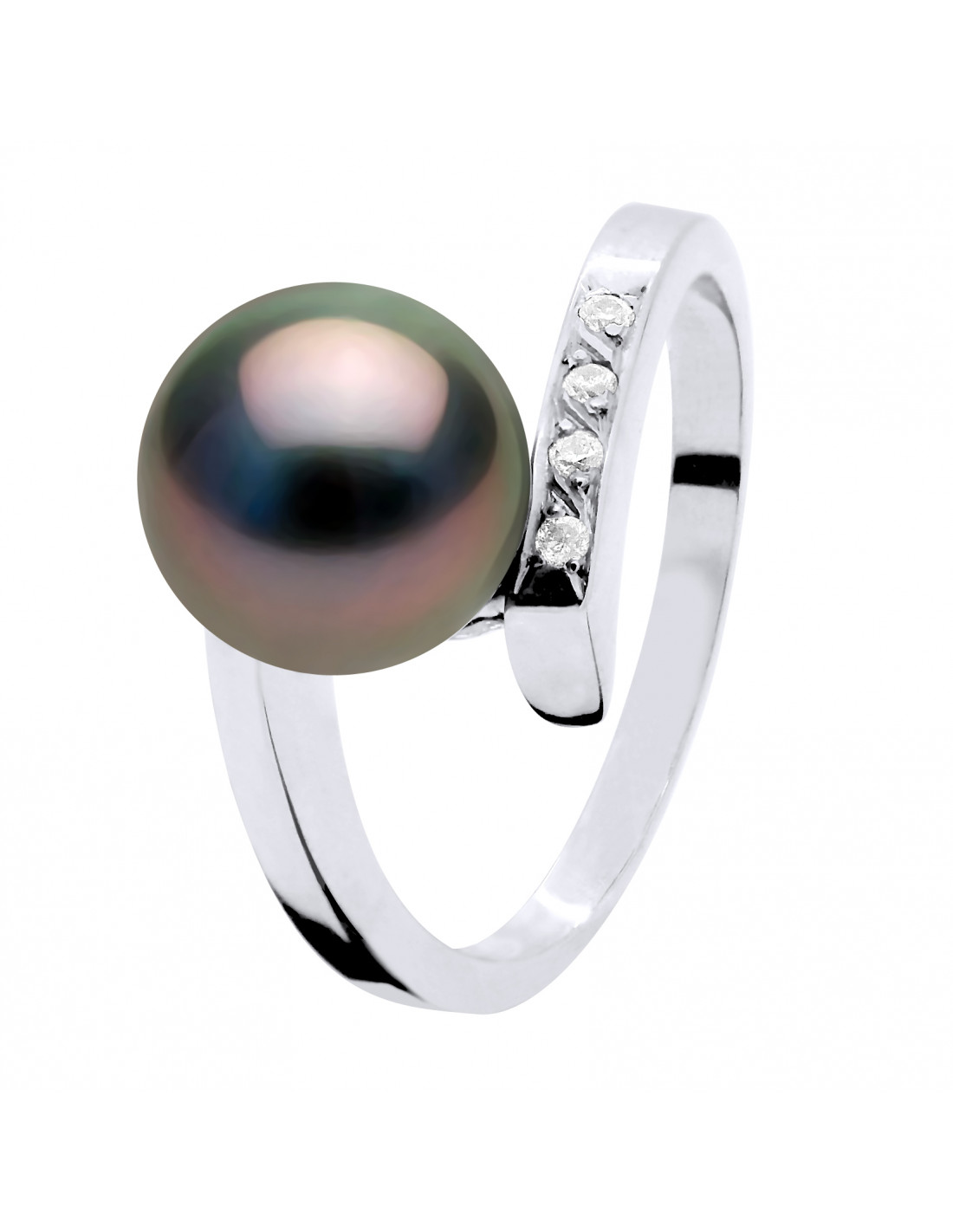 Ring Round Jewelery Tahitian Pearl Round 8-9 mm - Diamonds 0.040 CTS - Gold 375 - Ravanui