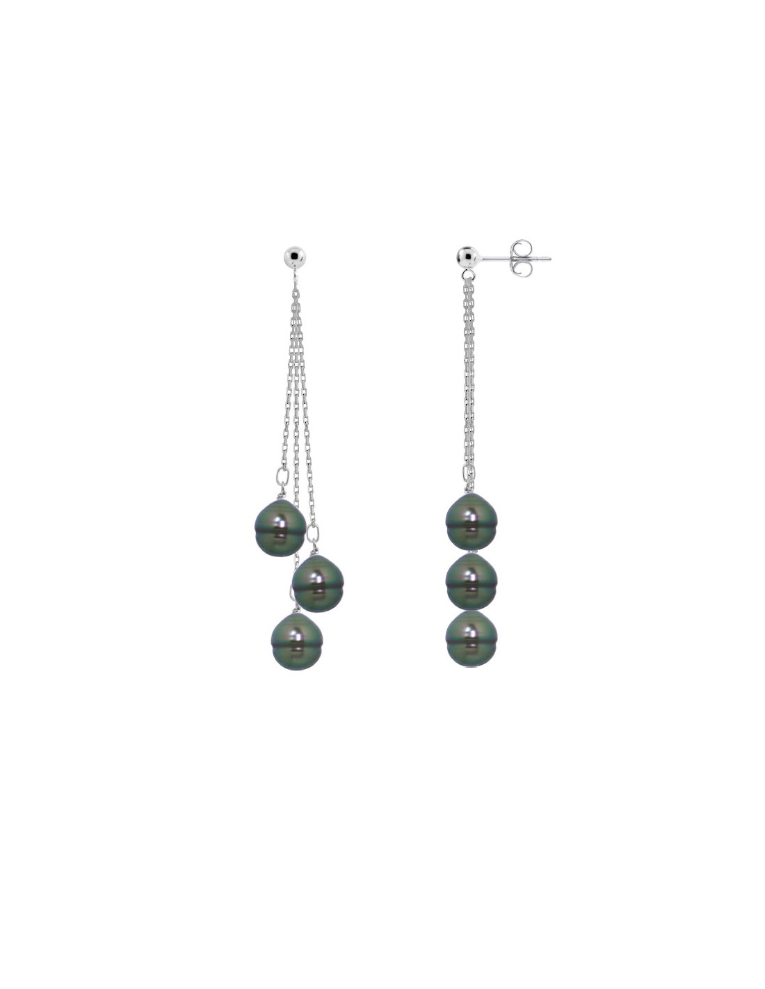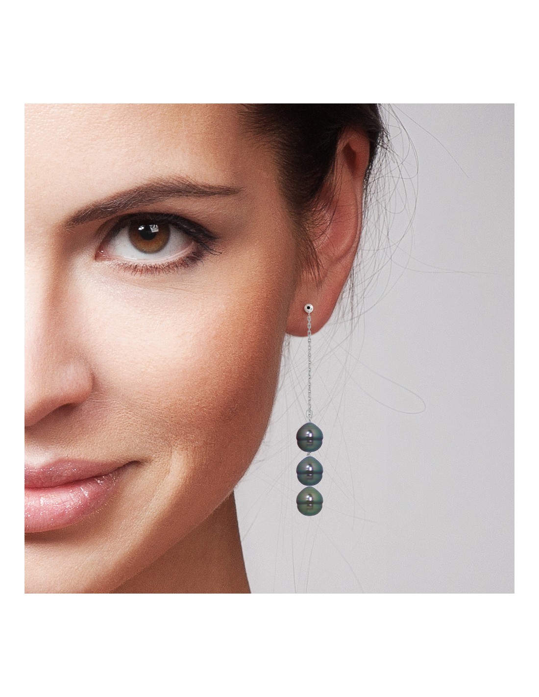 - Pendant earrings True Tahitian Culture Beads 12-9 mm - Quality A +