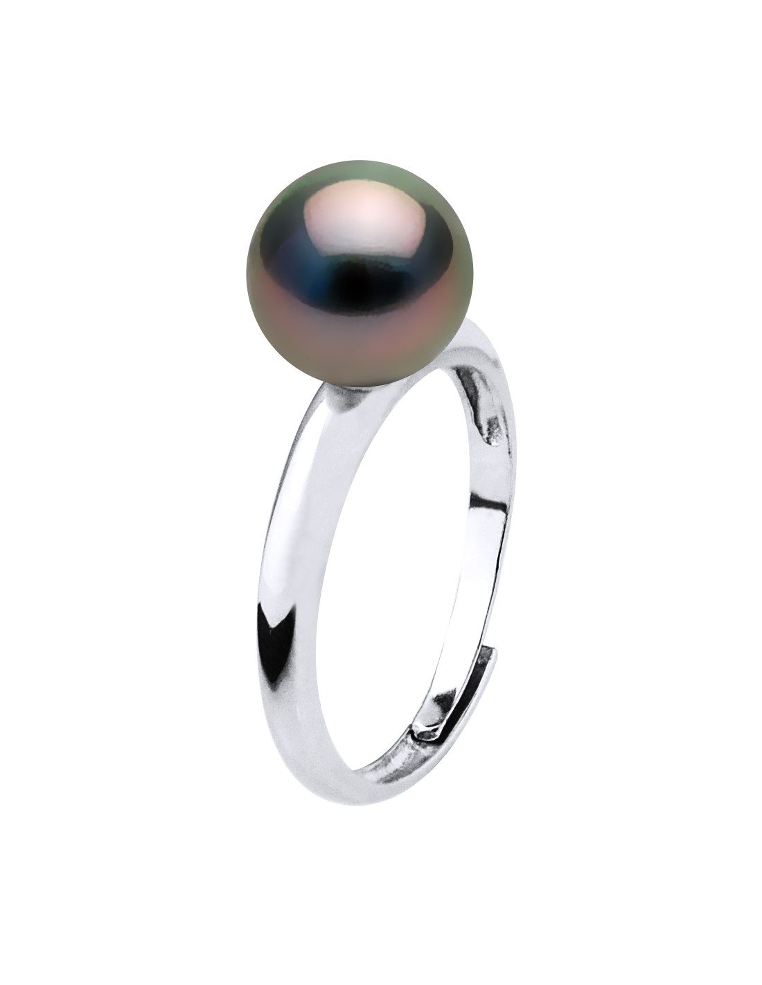 Ring Bombed Tahitian Bead Round 8-9 mm - Silver 925 - Raiatea