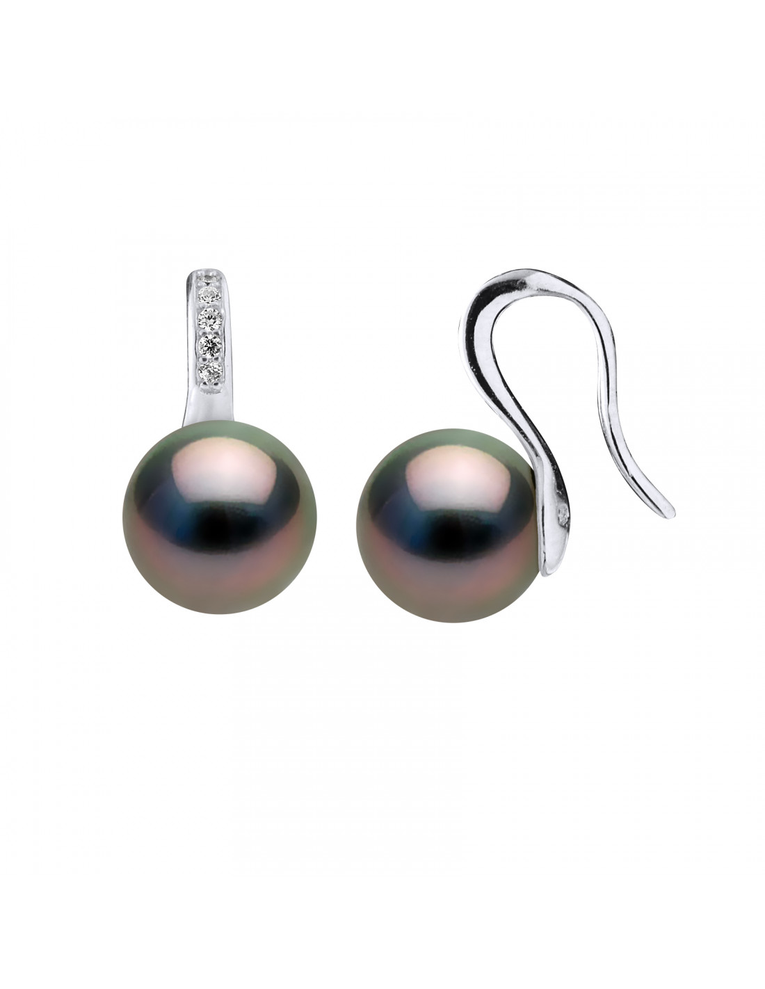 Round Tahitian Pearl Beads 9-10 mm Earrings - Crochet System - Silver Jewelry - Kondaka