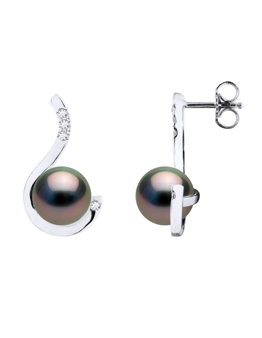 Round Tahiti Beads Prestige Earrings 8-9 mm - Diamonds 0.080 CTS - Jewelry Gold 375 -