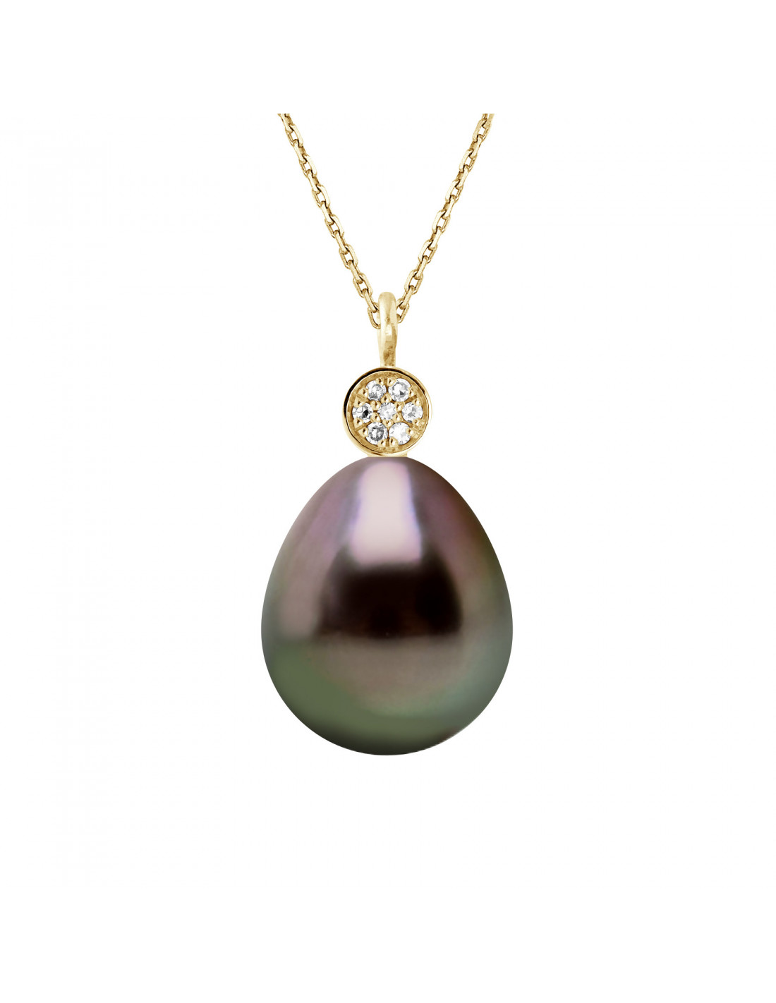 Tahiti Pear Pear Prestige Pear Pear Collar 10-11 mm - Diamond 0.020 CTS - Jewelery Gold 375 - Makati
