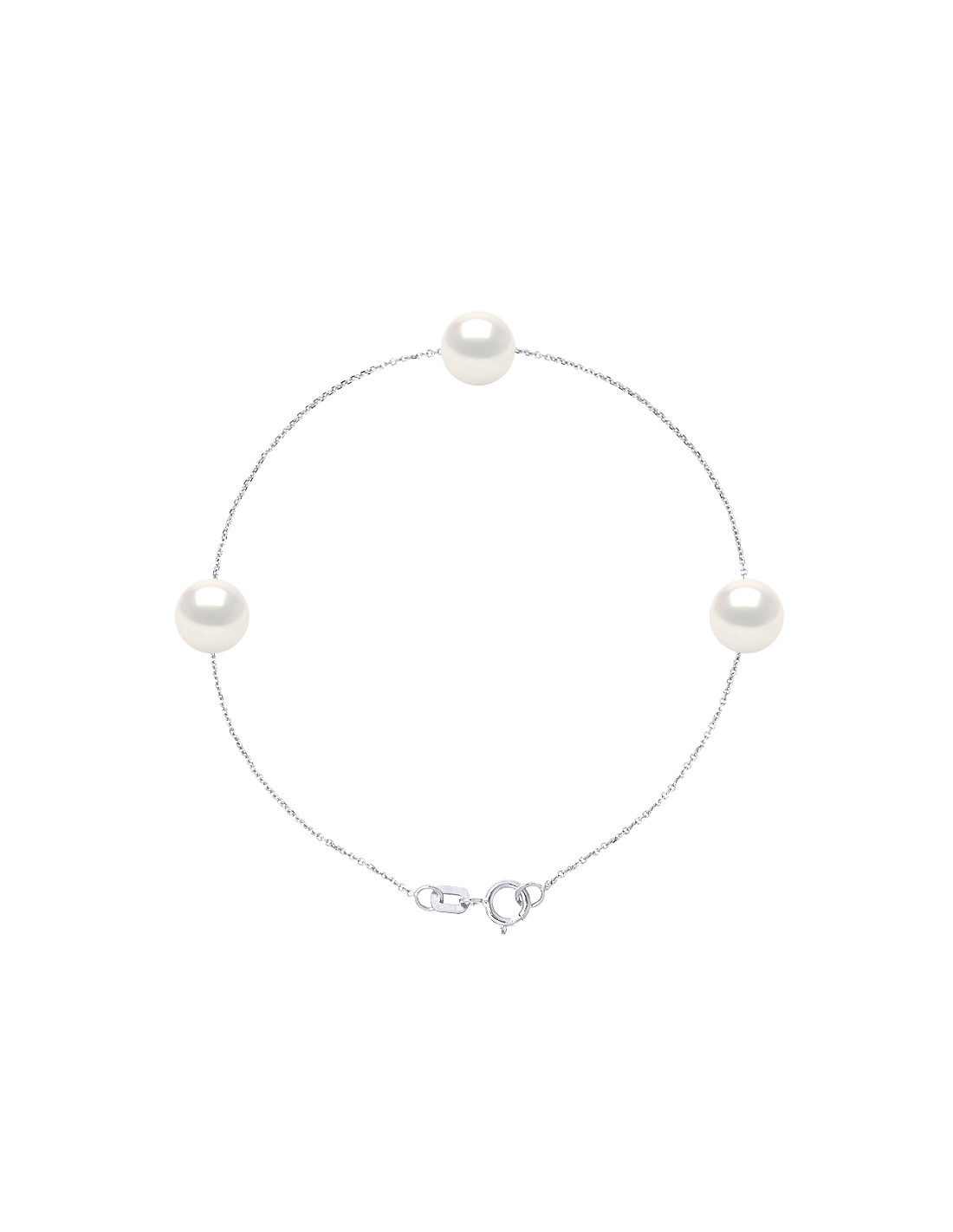 Bracelet Chainage 3 round beads 7-8 mm - Several colors - Silver 925 - Grimaud