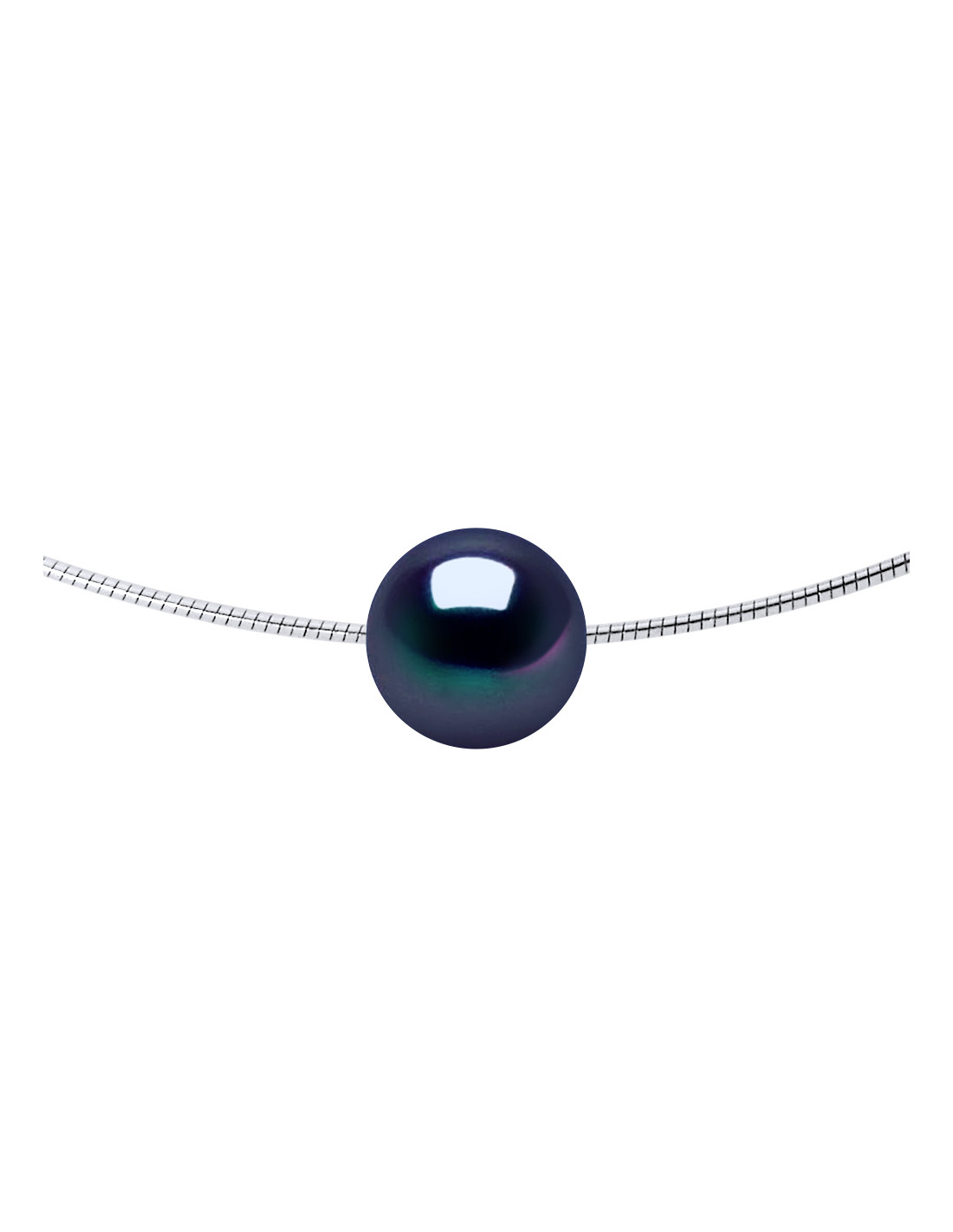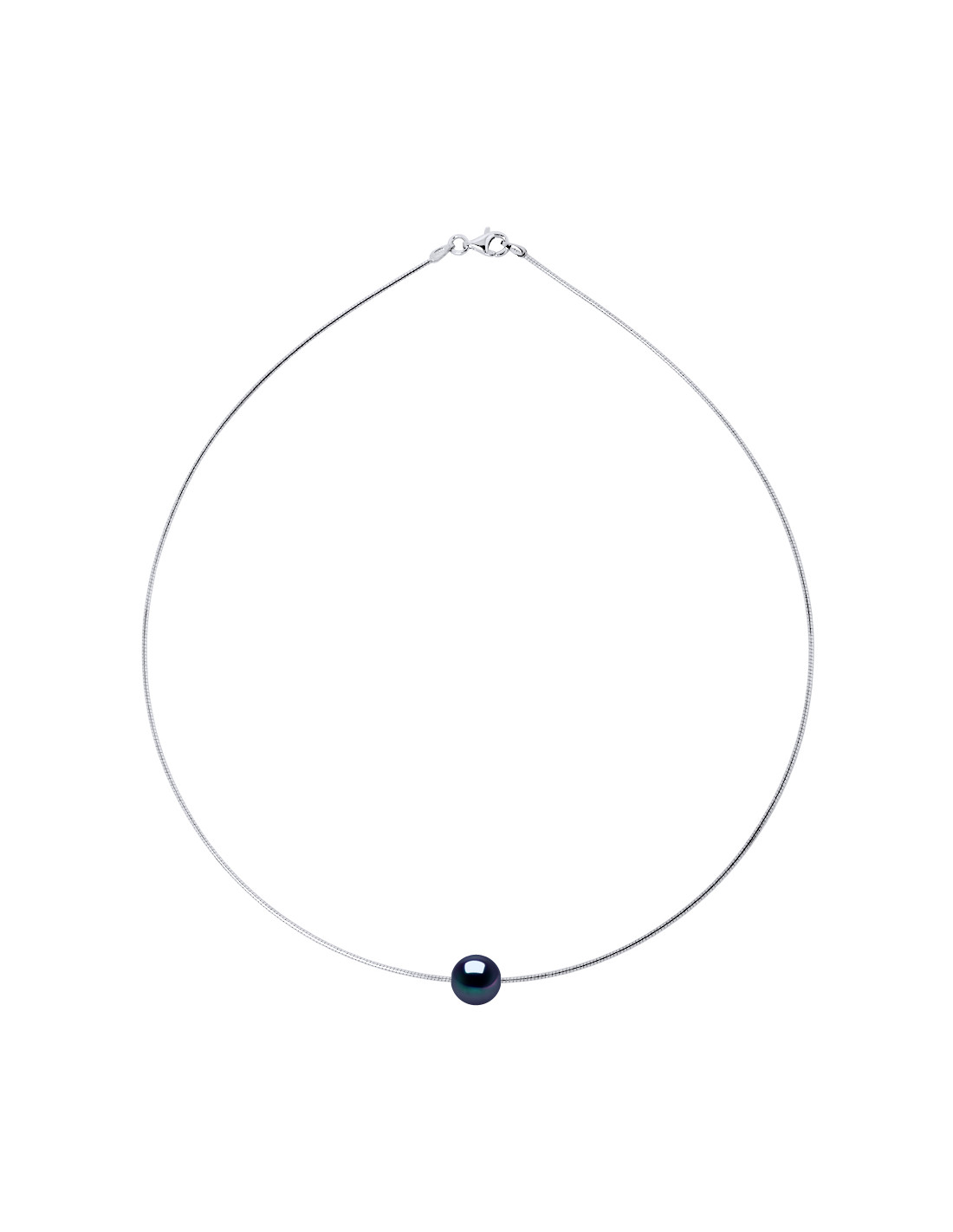 - Omega semi-rigid necklace genuine round freshwater culture pearl 9-10 mm - Quality AAA +