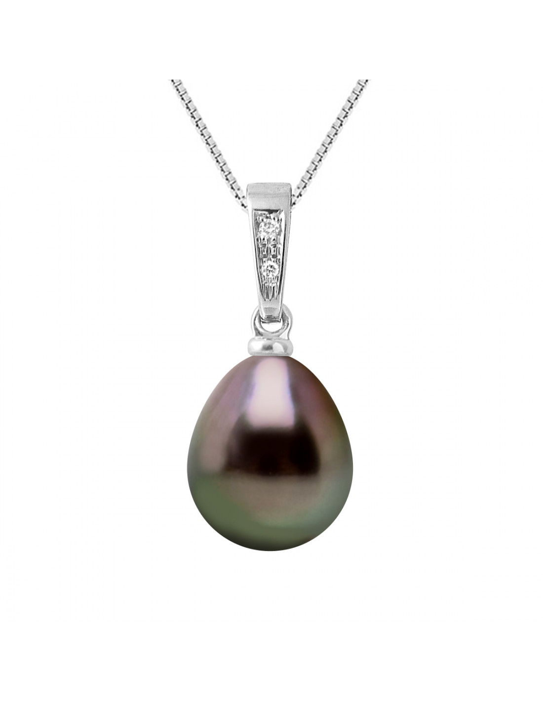 Prestige pendant Tahiti pear pear 9-10 mm - Diamonds 0.010 CTS - Chain Offered - Gold 375 - Tikehau
