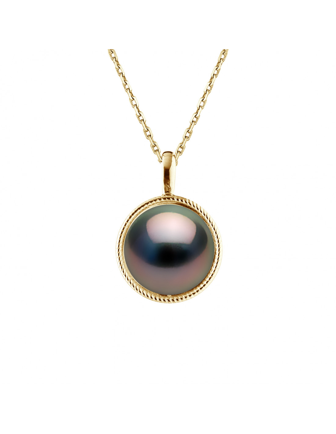 Tahitian Bead Necklace 10-11 mm - Aircourge Guilloche - Gold 375 - OIA