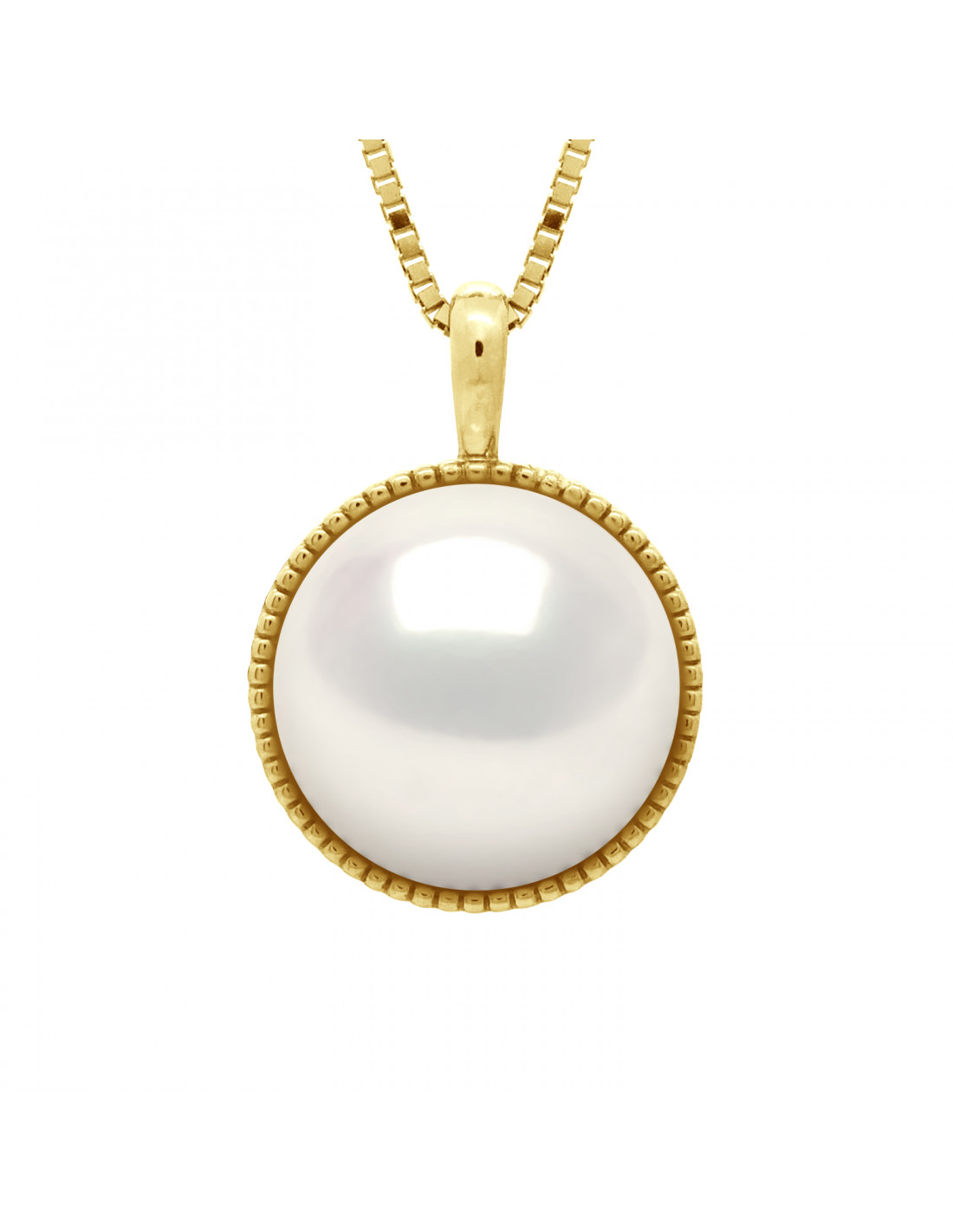 Pearl Necklace Button 10-11 mm - Guilloche Entourage - Venetian Chain - Gold 375 - Pleasure
