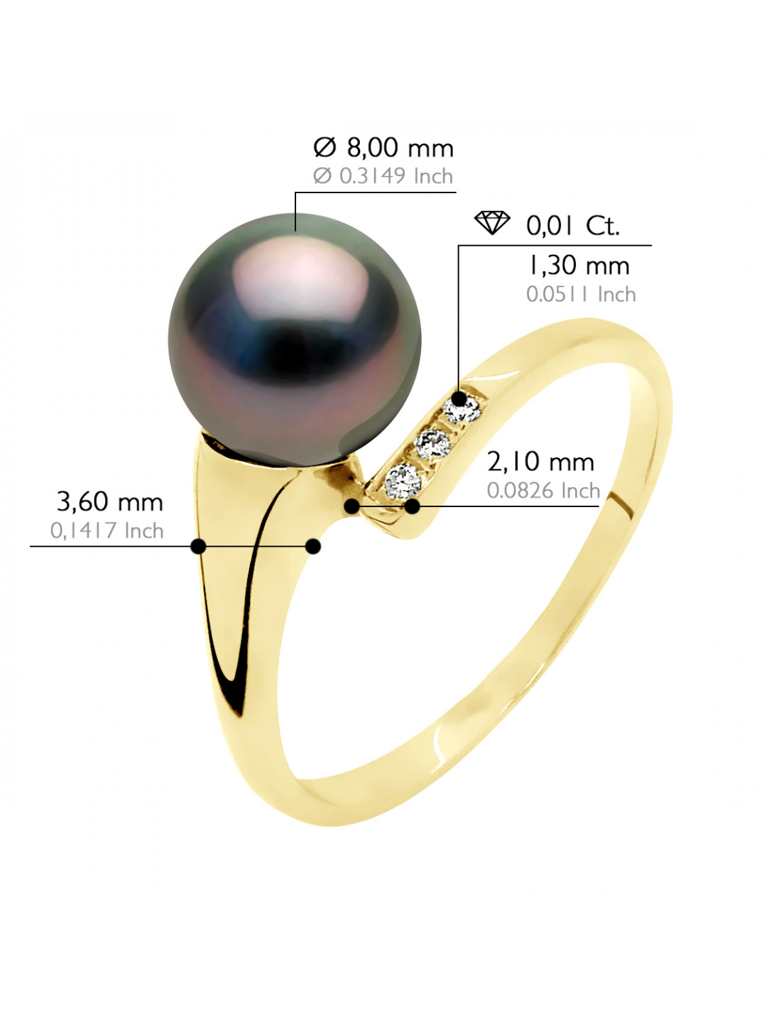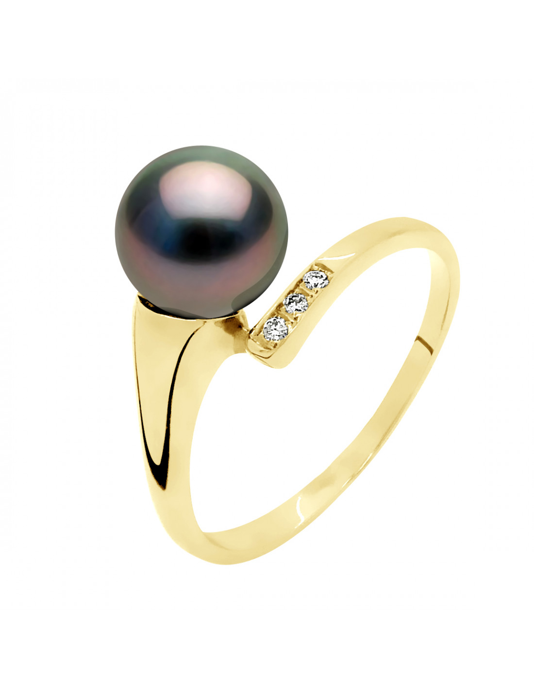 Ring Round Jewelery Tahitian Pearl Round 8-9 mm - Diamonds 0.030 CTS - Gold 375 - Reao