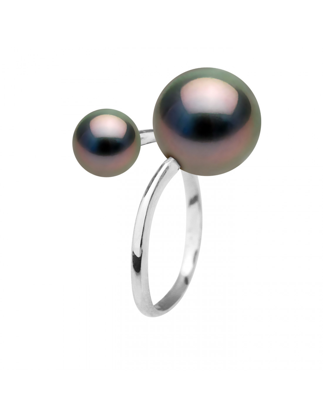 - Duo ring - 2 True Tahiti Culture Beads Round 7-8 and 11-12 mm - Quality A +