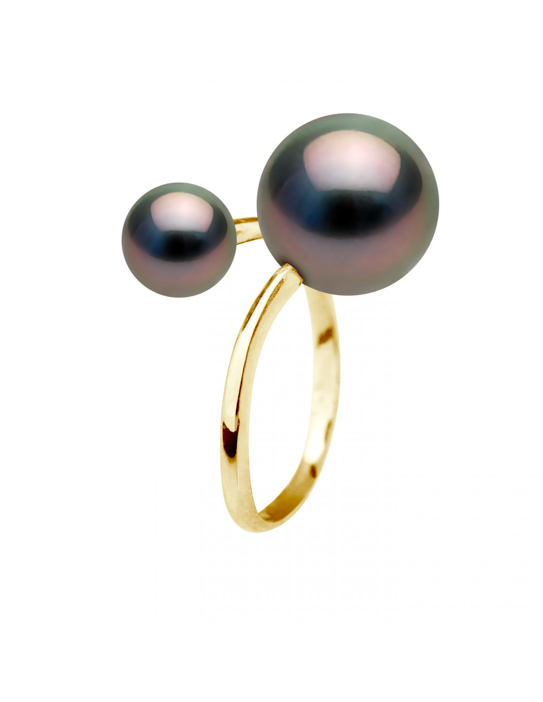 Ateliers Saint Germain- Duo ring - 2 True Tahiti Culture Beads Round 7-8 and 11-12 mm - Quality A +