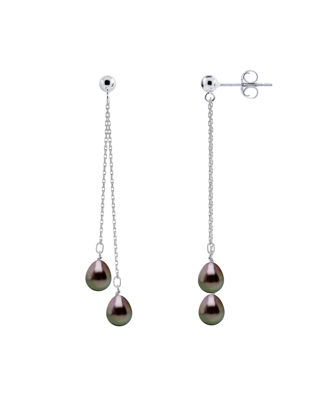 Ateliers Saint Germain- Double Double Earrings True Tahiti Culture Beads Poir 7-8 mm - Quality A +