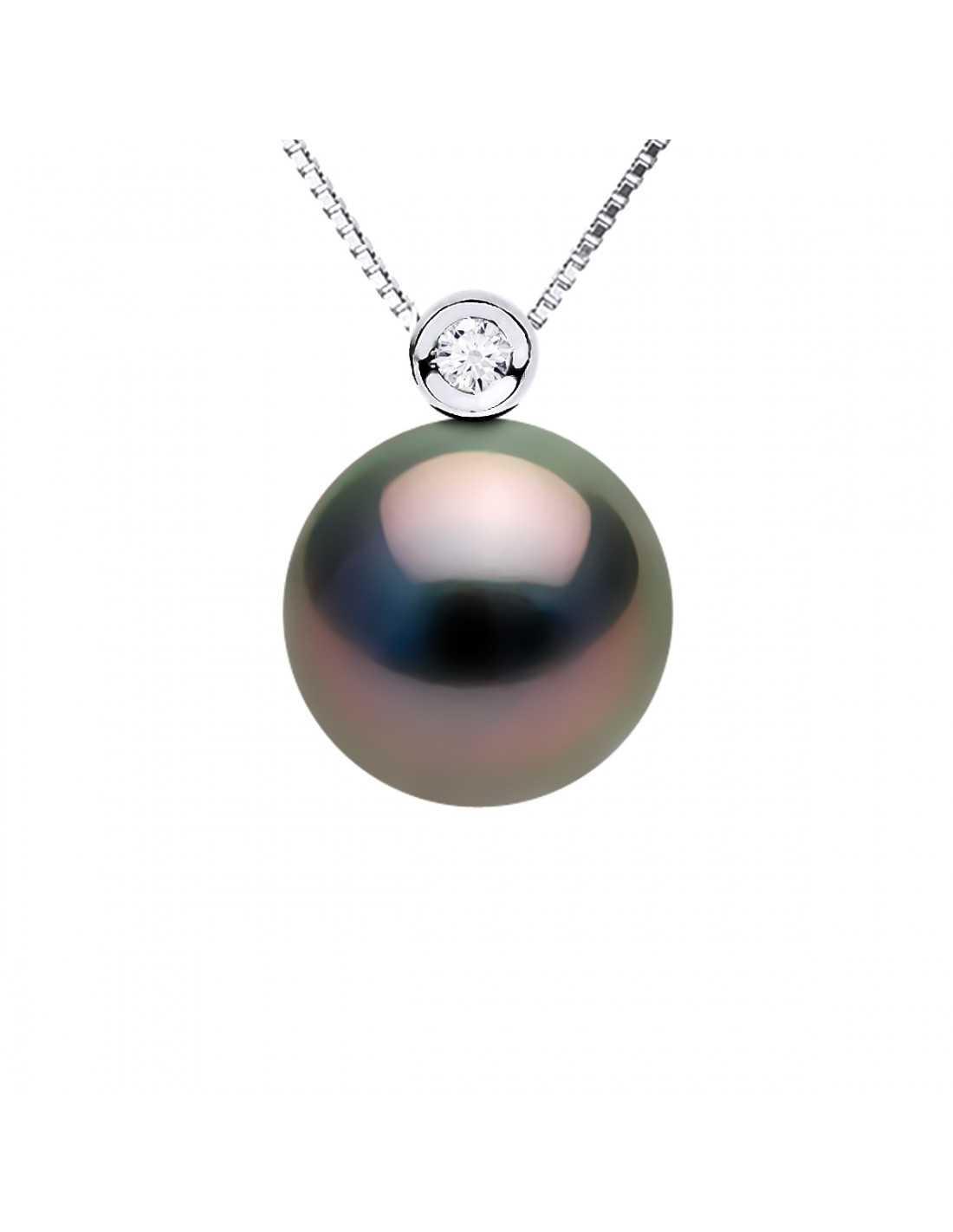 Round Tahitian Pearl Prestige Necklace 10-11 mm - Diamonds 0.010 CTS - Jewelry Gold 375 - Naparo