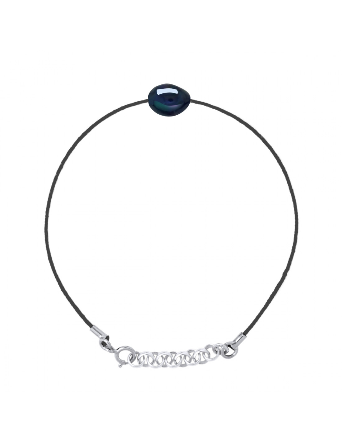 Bracelets Link Cord Black Baroque Bead 8-9 mm - Several Colors - Silver 925 - Cassis