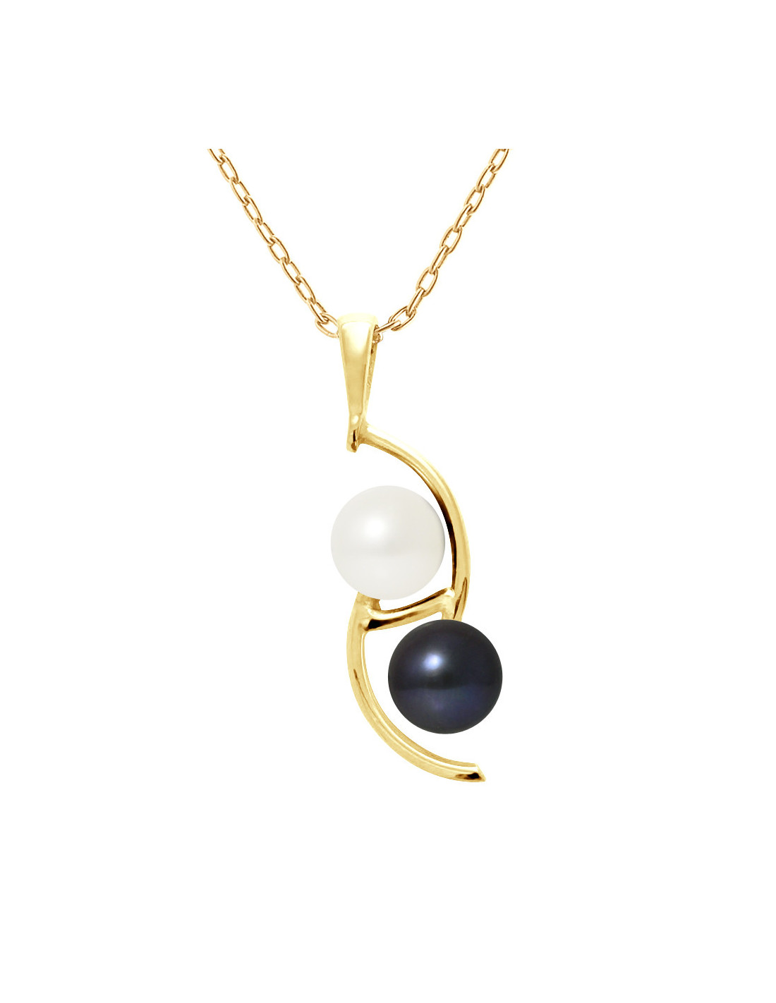 Toi & Moi pendant - Round Beads 7-8 mm - Available Chain - Gold 750 - FONTAINEBLEAU