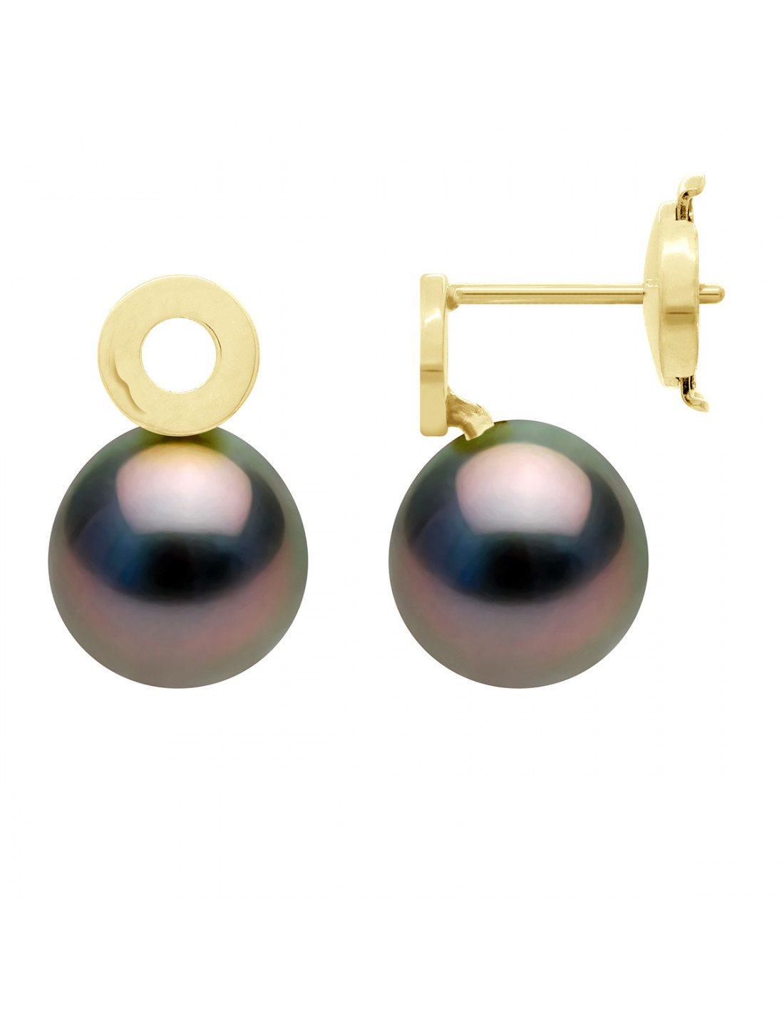 Round Tahiti Beads 8-9 mm Earrings - Strollers System - Gold 750 - Matania