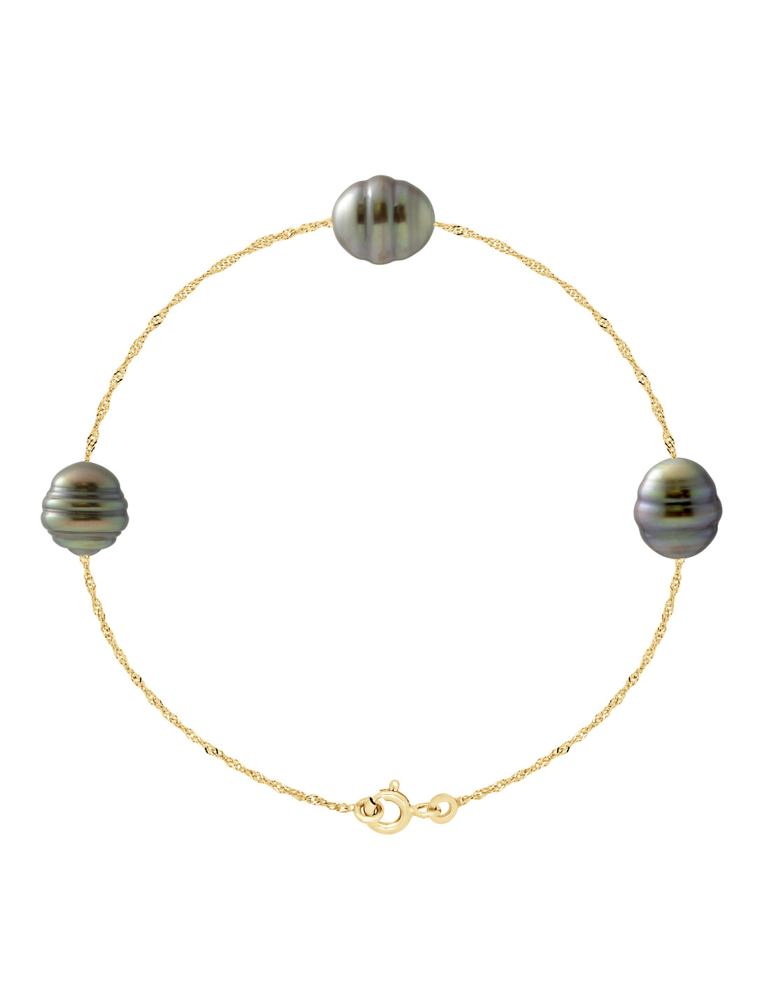 Bracelet 3 Tahitian Beads Circled 8-9 mm - Singapore Chain - Gold 375 - Mahani