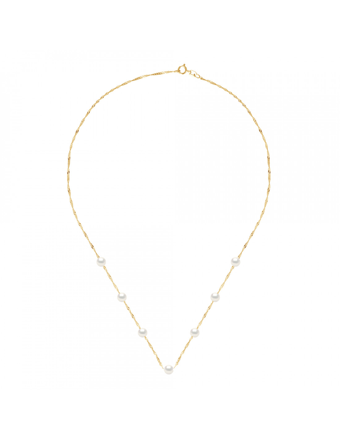 Necklace 7 round beads 6-7 mm - Singapore chain - Gold 750 - Colbert