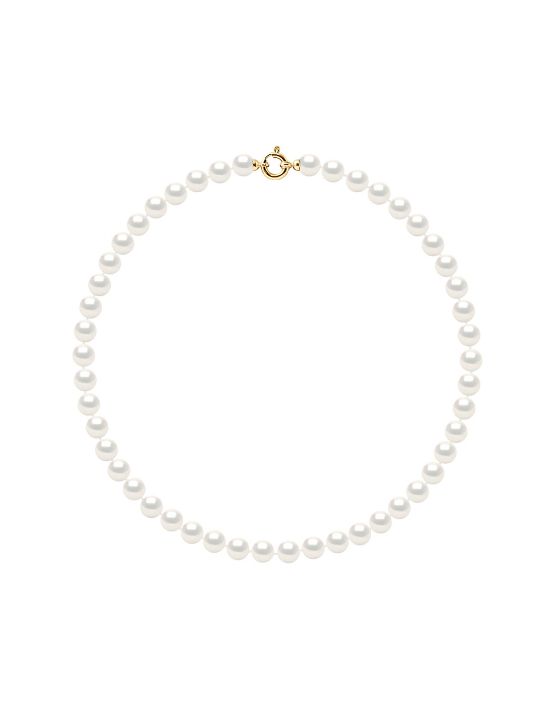 Row Row Necklaces Round Beads - Sizes from 7 to 9 mm - 42 cm - Prestige Marine Ring - Gold 750 - Trocadero
